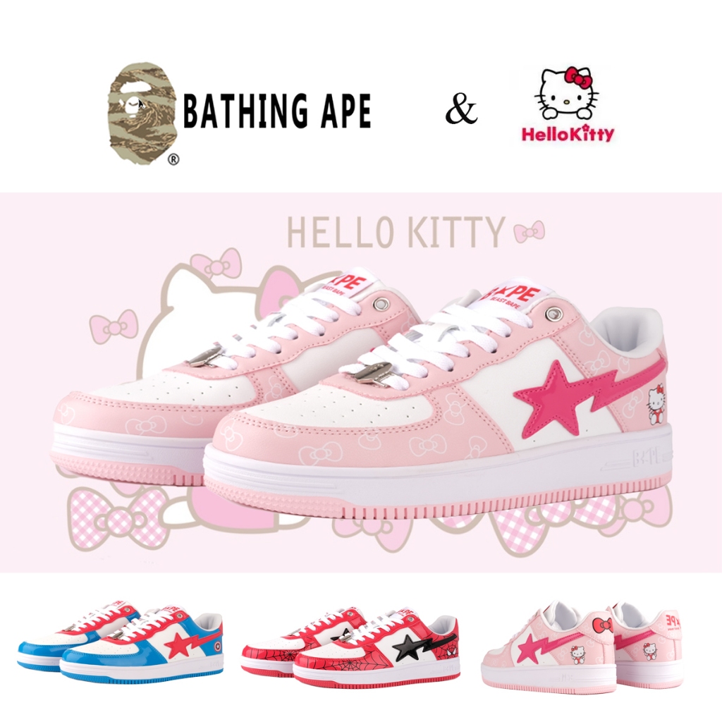 Bape Star Ape-Man Head Low-Cut Fashion Trendy Sneakers Men Women Shoes Glossy HelloKitty