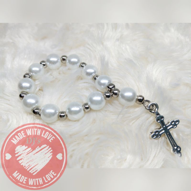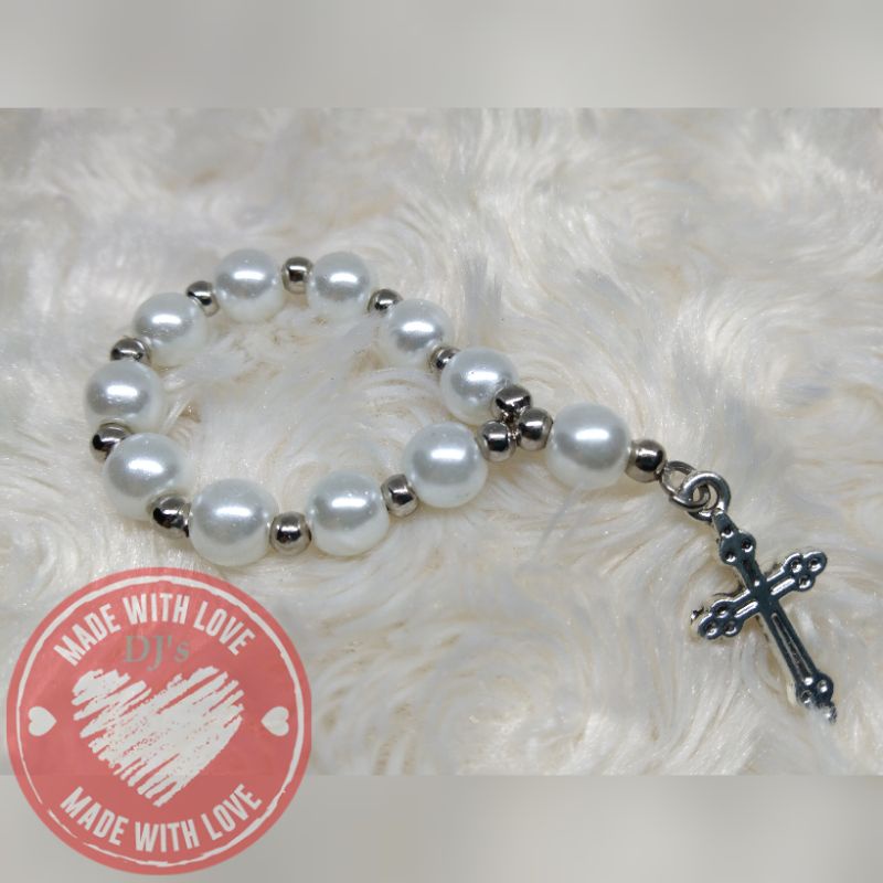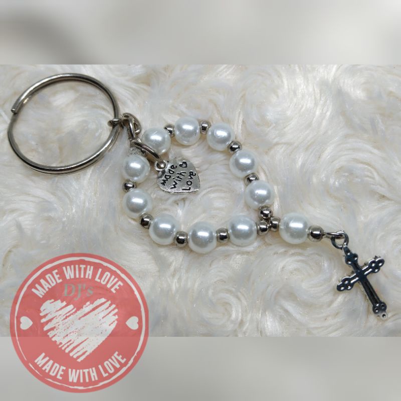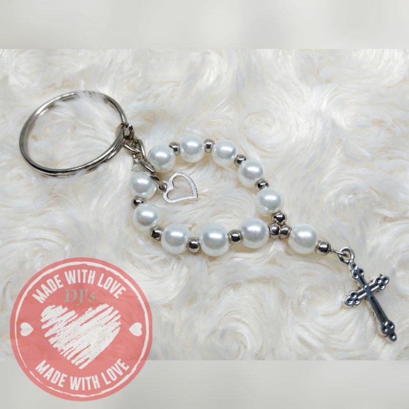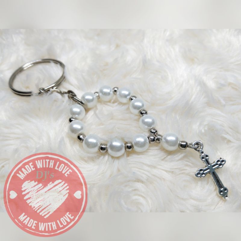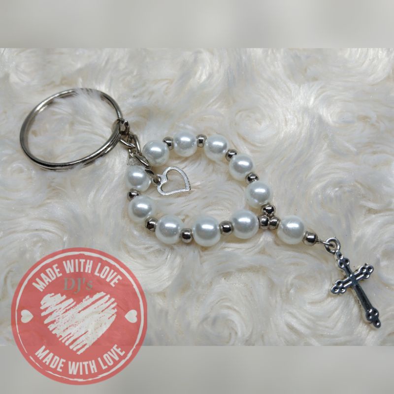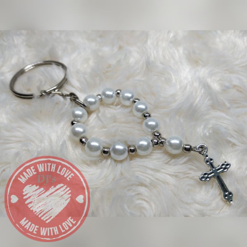 Keychain Mini Rosary White Pearl Souvenirs / Baptismal Birthday Giveaways