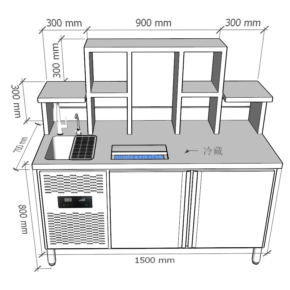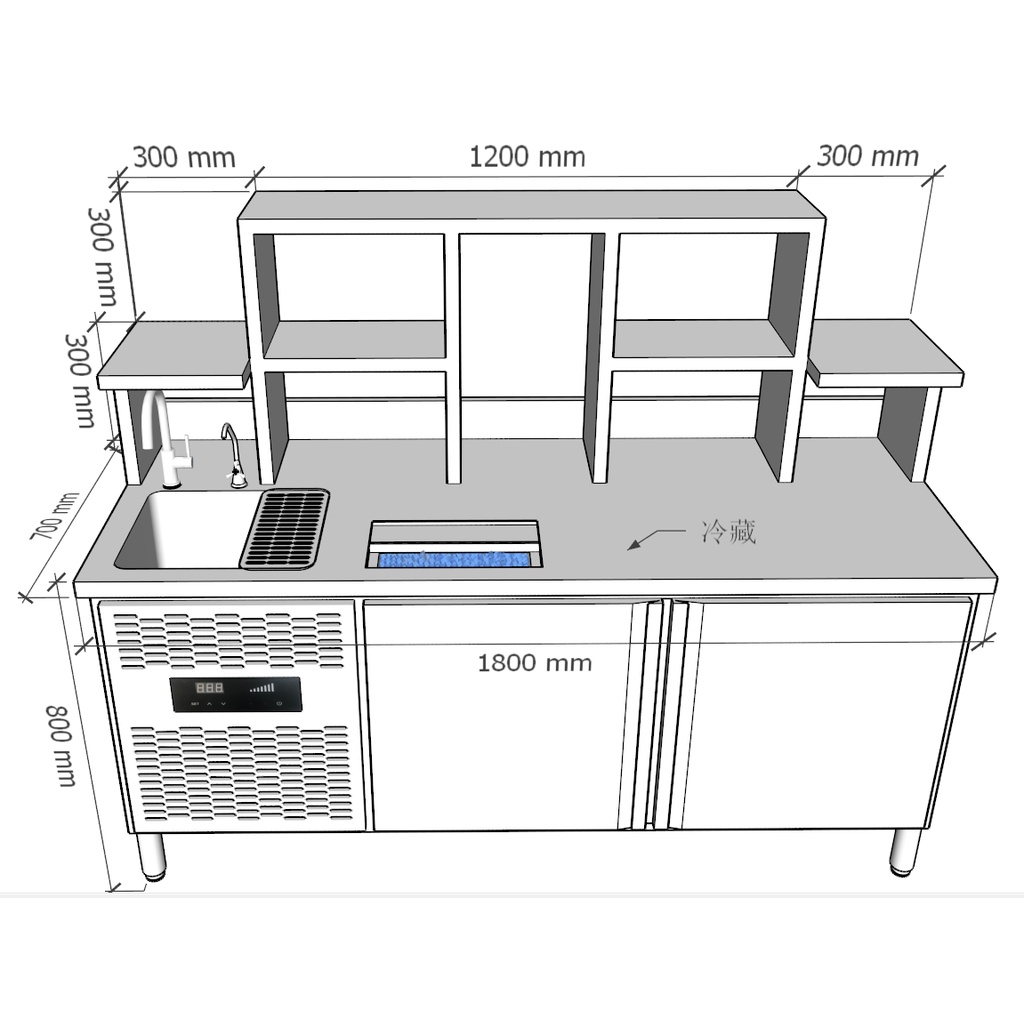 Bar Counter with Chiller 1.8m/1.5m/1.2m single sink with ice bin for milk tea/coffee shop/restaurant