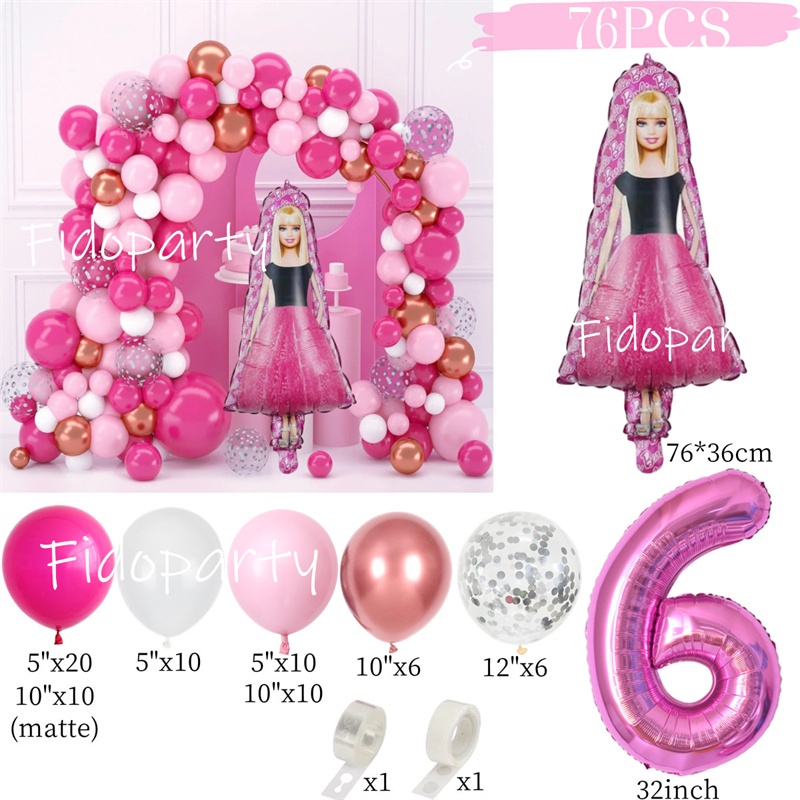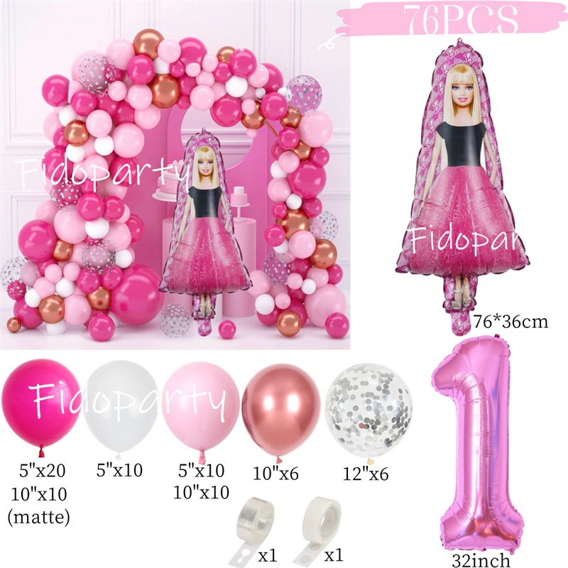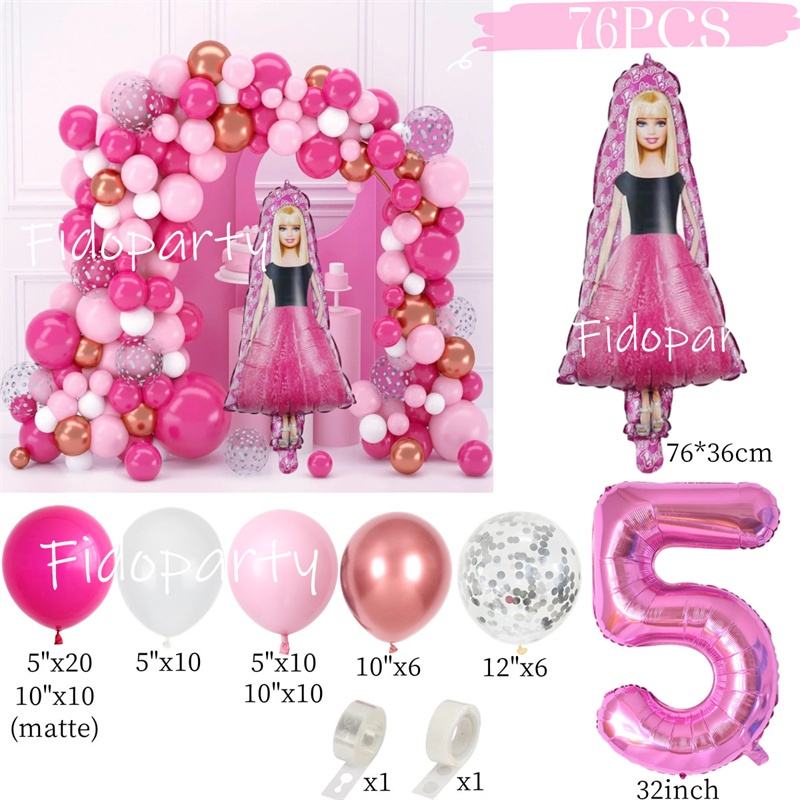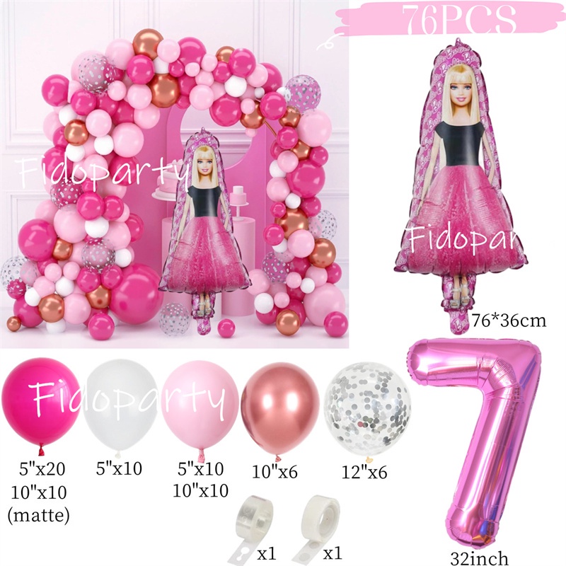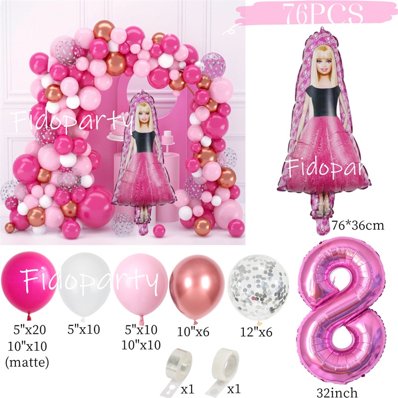 Barbie Balloon Garland Arch Kit 32inch Pink Number Balloon For Girls Birthday Princess Theme Baby Shower Party Decoration