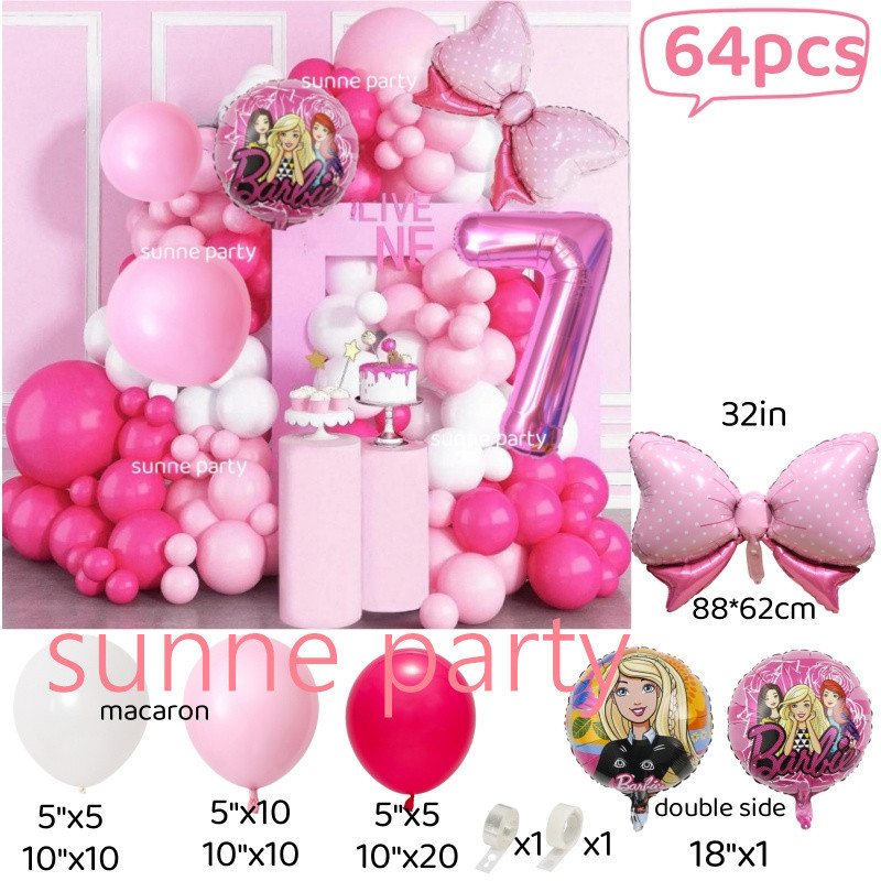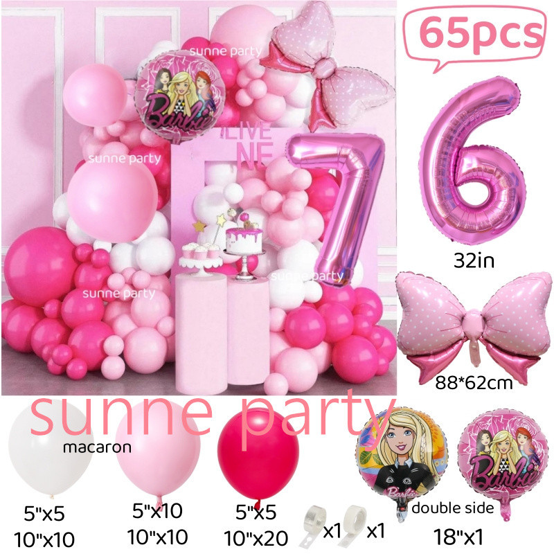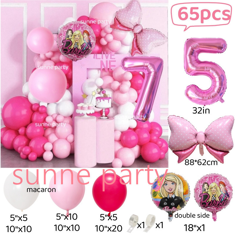 Barbie Balloon Theme Set 32inch Pink Number Balloon 0-9th Birthday Baby Shower Princess Party Decorations Party Needs