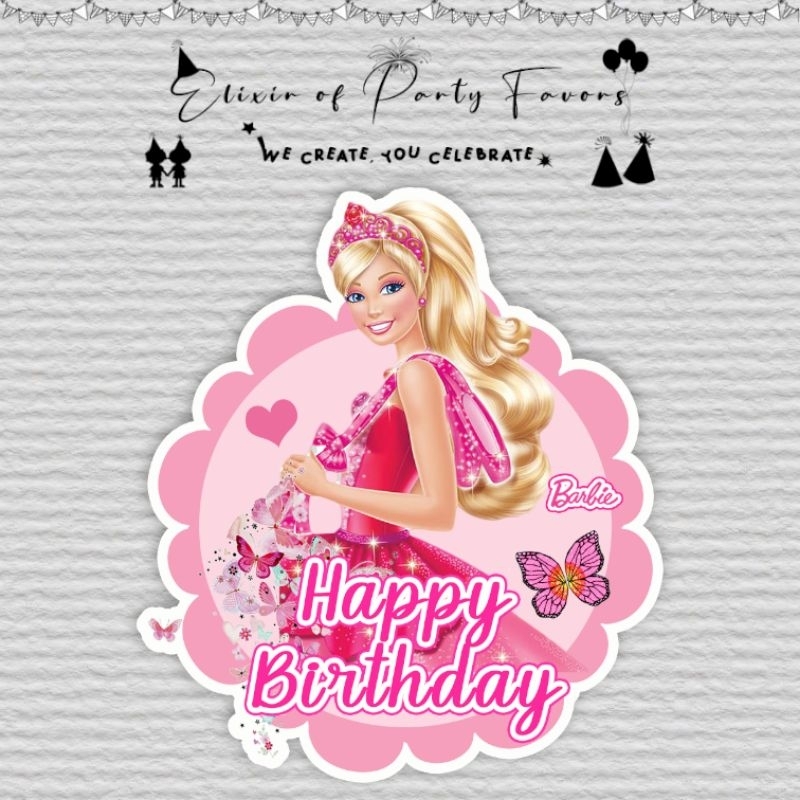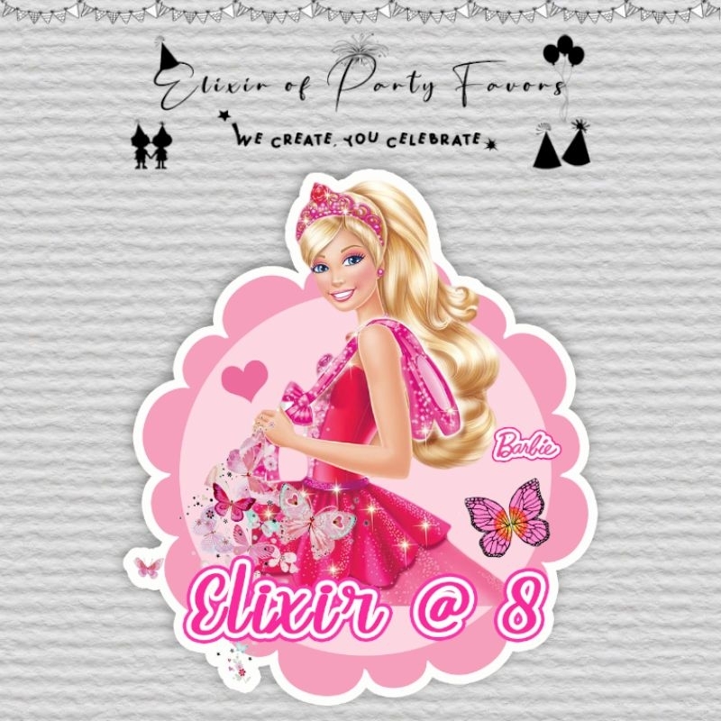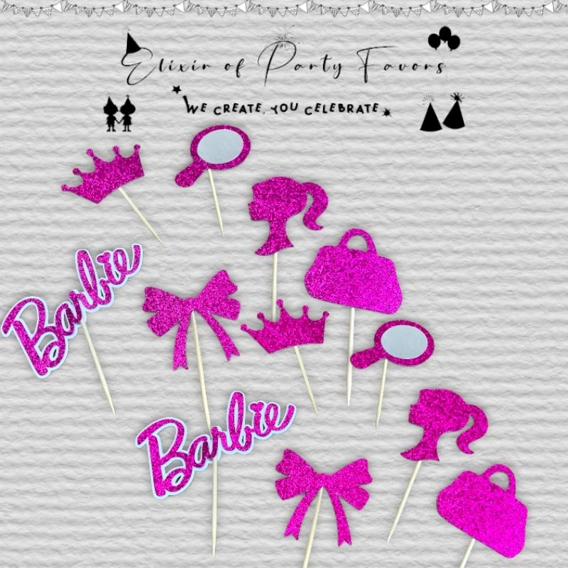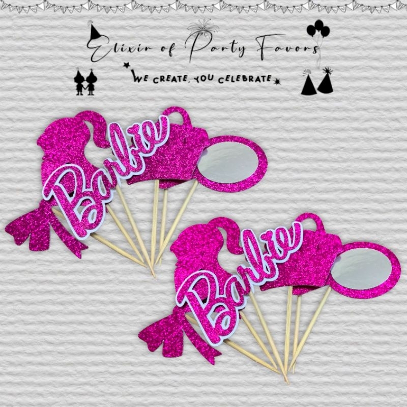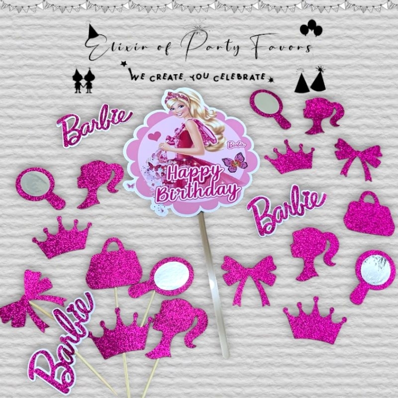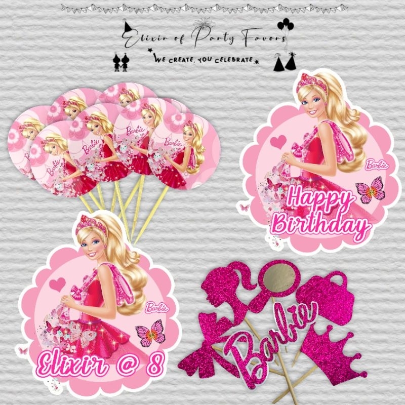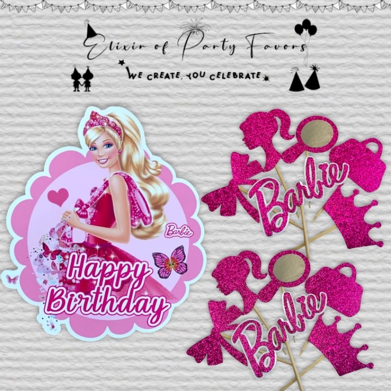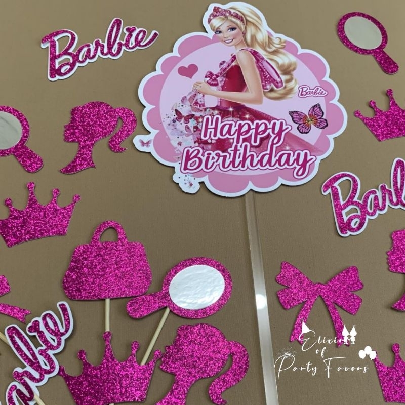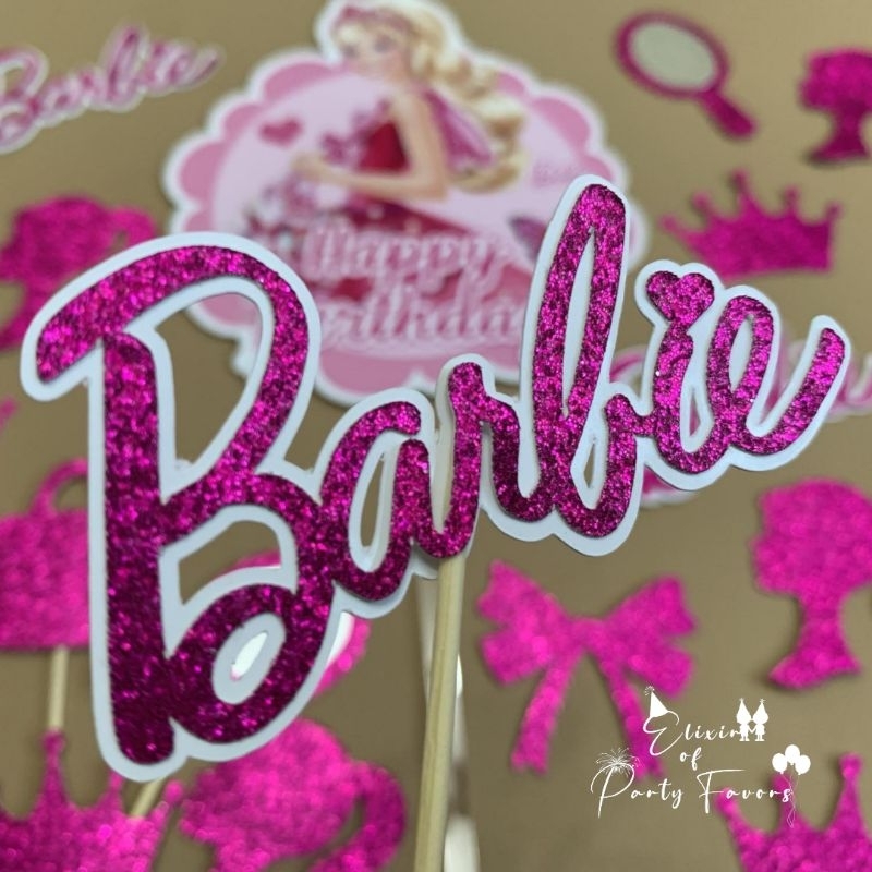 Barbie Cake and Cupcake Topper Customized Cake Topper Glittered Cupcake Topper