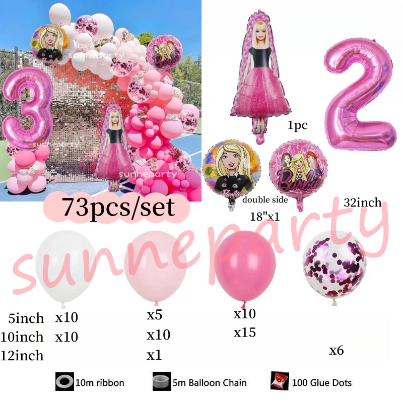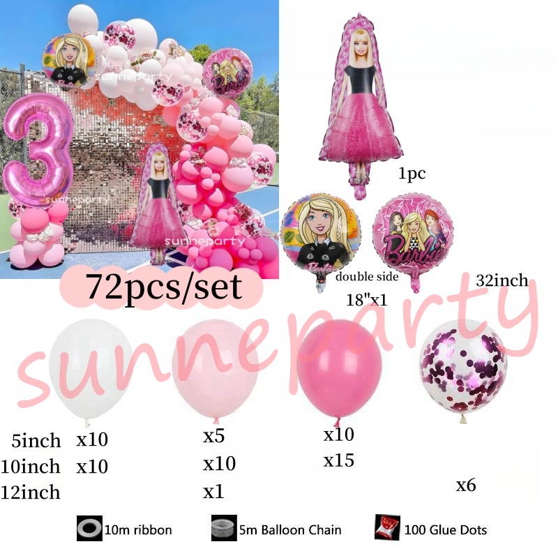 Barbie Doll Theme Balloons 32inch Number Balloon Garland Pink White Latex Balloons for Party Girl Birthday Decorations