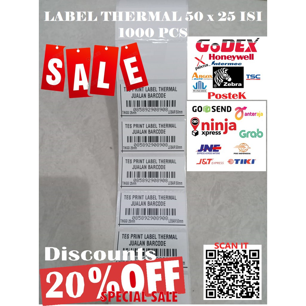 Barcode PRINTER LABEL STICKER PAPER 50 X 25 MM | 50x25 - 1 LINE - THERMAL xprinter 360b 370b