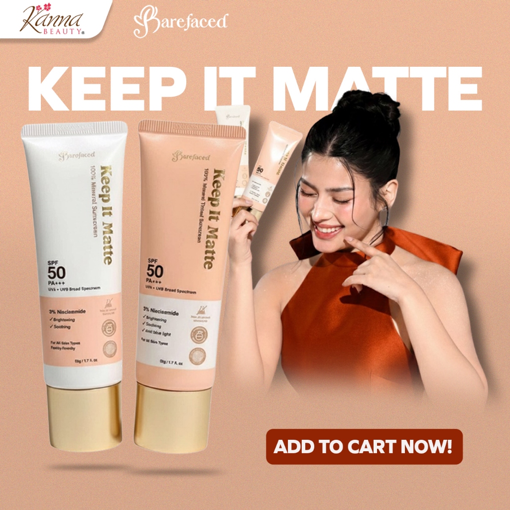 Barefaced Keep It Matte 100% Mineral Sunscreen SPF50 PA+++ (50g) | Tinted Sunscreen, Untinted Sunscr