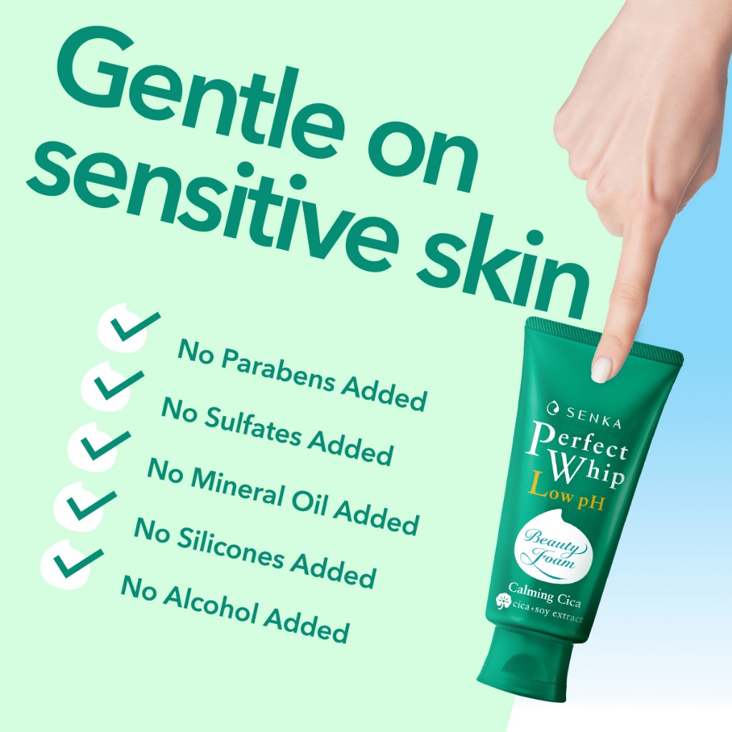 SENKA Perfect Whip Calming Cica Cleansing Foam 100g [For Sensitive Skin, Low PH for Gentle Cleanse]