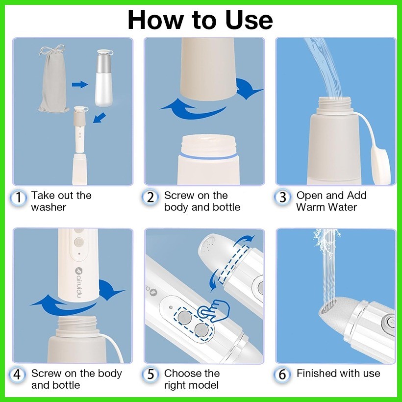 ✼ ☎ Airuidu YB460 Portable Bidet Electric Handheld 270ML Bath Sprayer for Postpartum USB rechargeab