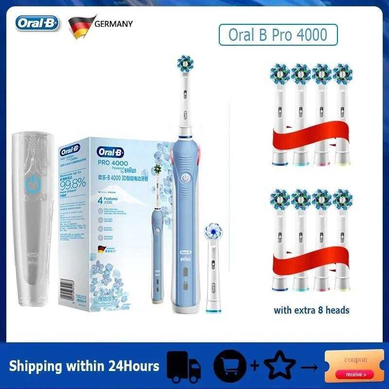 Oral B Electric Toothbrush Pro4000 3D Action Daily Clean Teeth 4 Modes Gum Cares Rechargeable 353