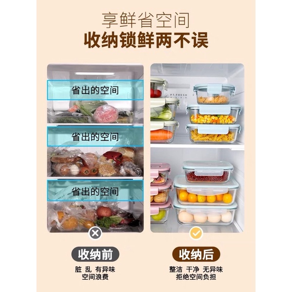 Glass Food Keeper Crisper Airtight Leakproof Microwavable Oven Safe Freezer Safe Lunch Box