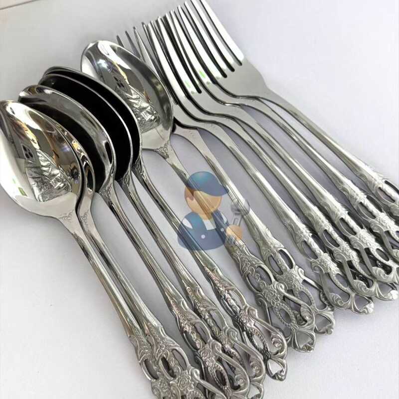 Silver Spoon And Fork Stainless Steel 6Pcs Spoon Fork Dinnerware Cutlery 435