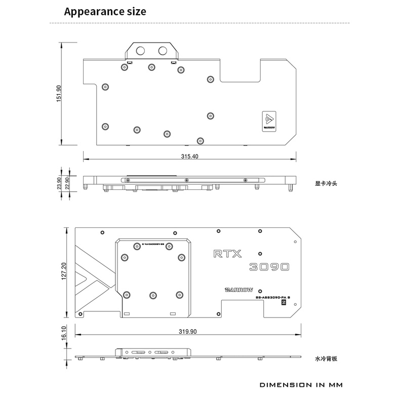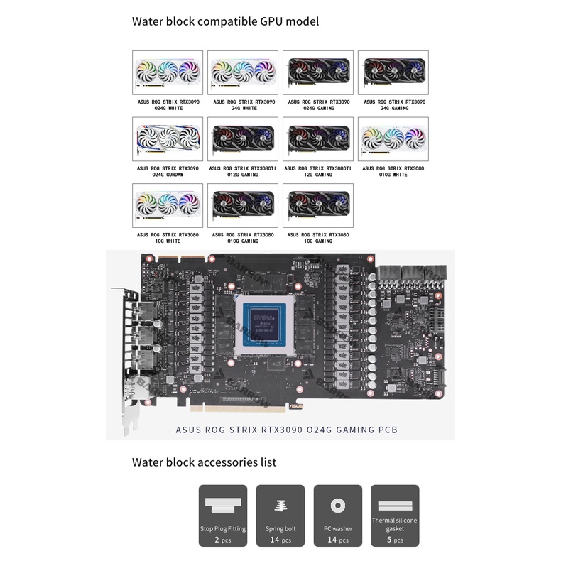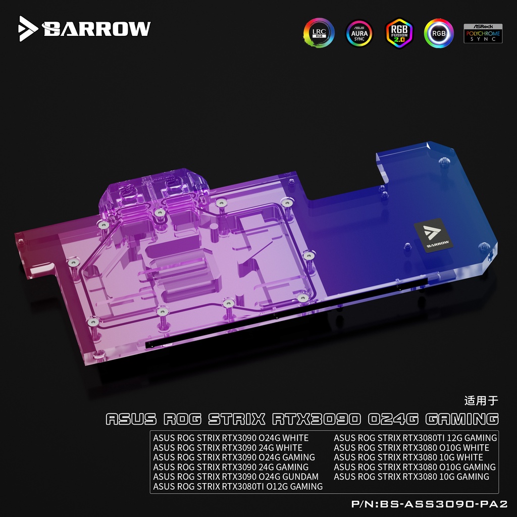 Barrow GPU Water Block Cooling Backplane for ASUS ROG STRIX RTX 3090 3080 GAMING, Water cooled Backplate , BS-ASS3090-PA2