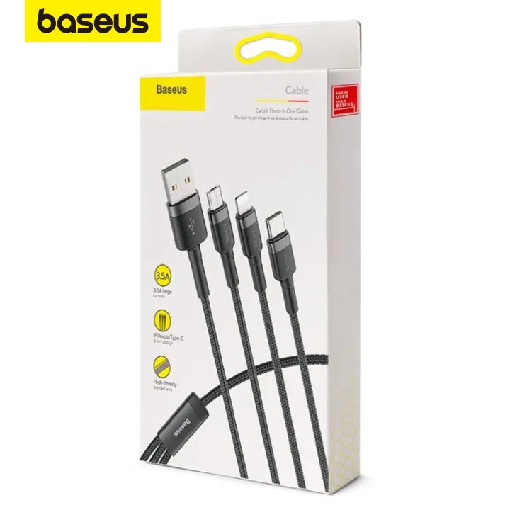 Baseus 3 in 1 USB Cable Multi Charging Cable USB to M+L+C For iPhone Android