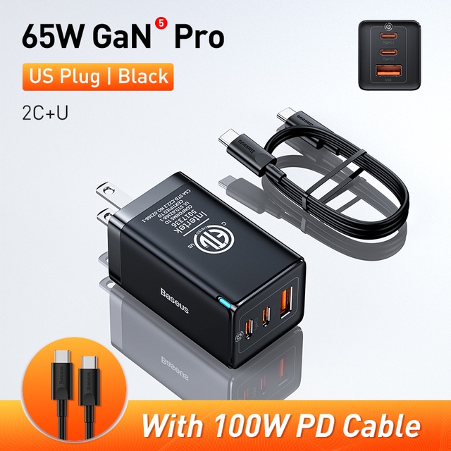 Baseus 65W GaN5 USB Type C Charger 2C+U Upgraded Phone Adapter Charger For iPhone 14