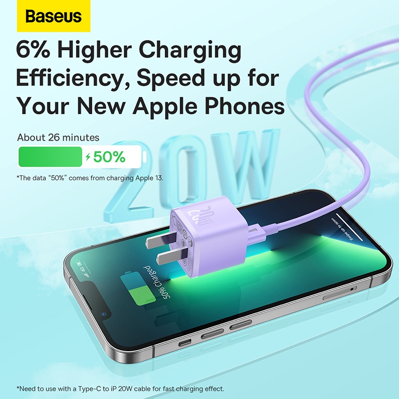Baseus PD 20w GaN5 Fast Charger 1C Quick Charging for i14 13 12 Pro Max