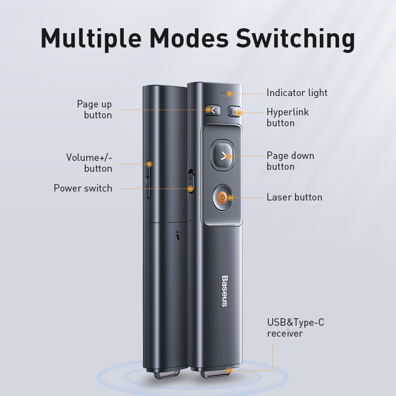 Baseus Presenter Wireless Laser Pointer 2.4GHz Remote Controller for Mac Win Projector Powerpoint Presenter Presentation Pen PPT
