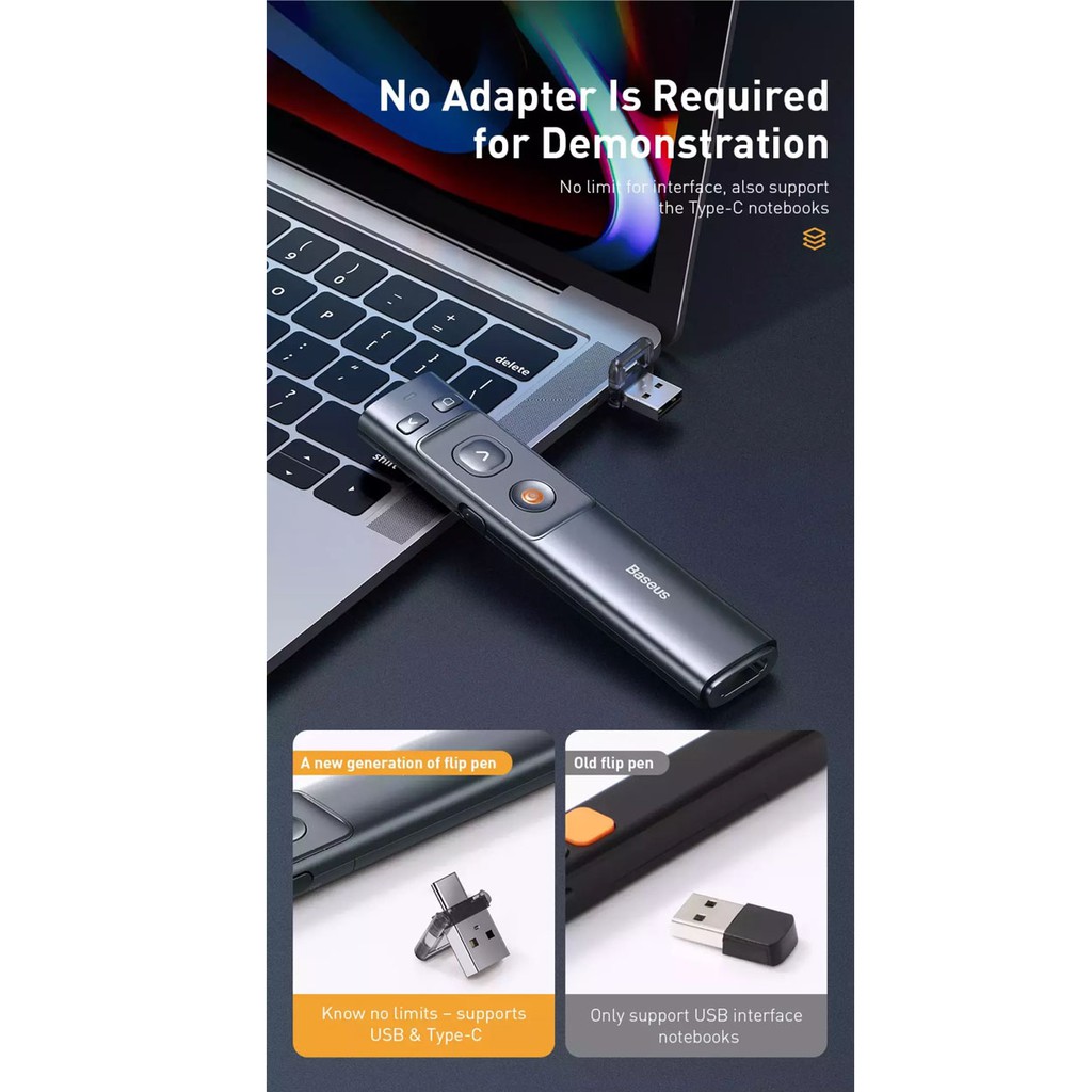 Baseus Presenter Wireless Laser Pointer 2.4GHz Remote Controller for Mac Win Projector Powerpoint