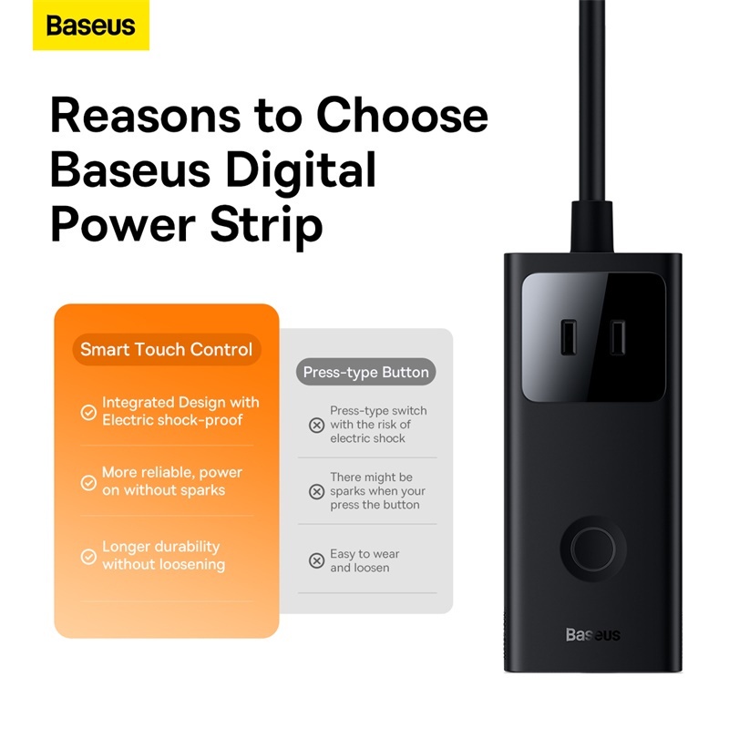 Baseus USB C Charger 65W/40/30W/35W Digital Power Strip 3AC Surge Protector Desktop Adapter Fast charging Socket CN Plug Touch Control USB Charger