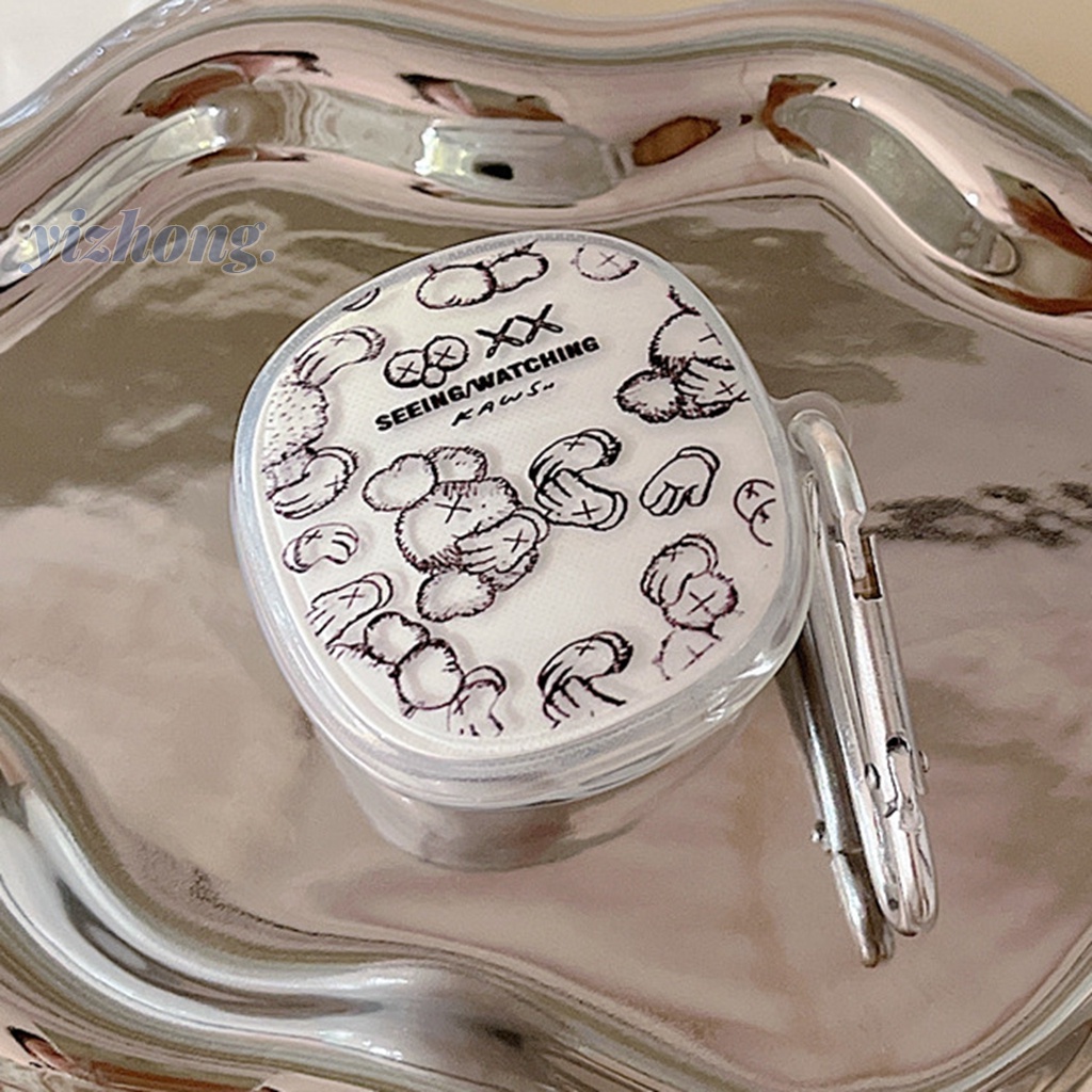 Baseus WM01 WM02 Fresh Tulip Flowers Floral Love Heart Kaws Soft TPU Transparent Bluetooth Earphone Case with Anti-lost Ring Buckle Wireless Earbuds Anti-fall Protective Cover