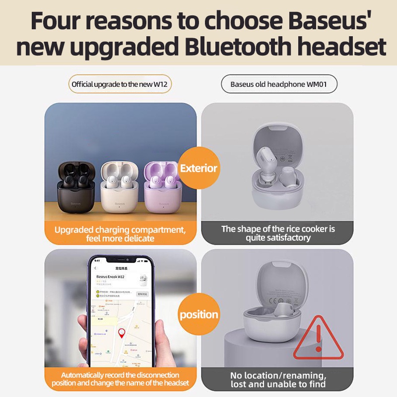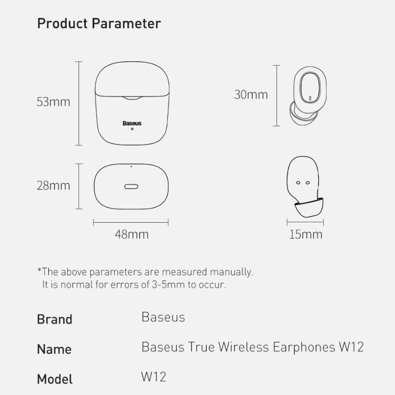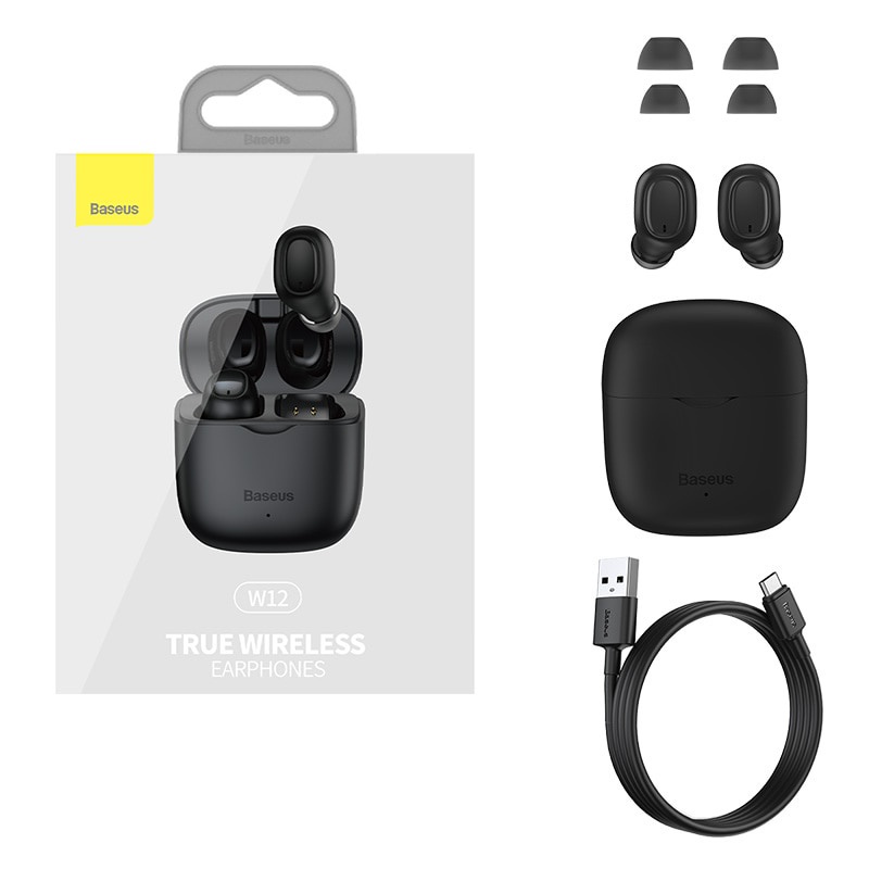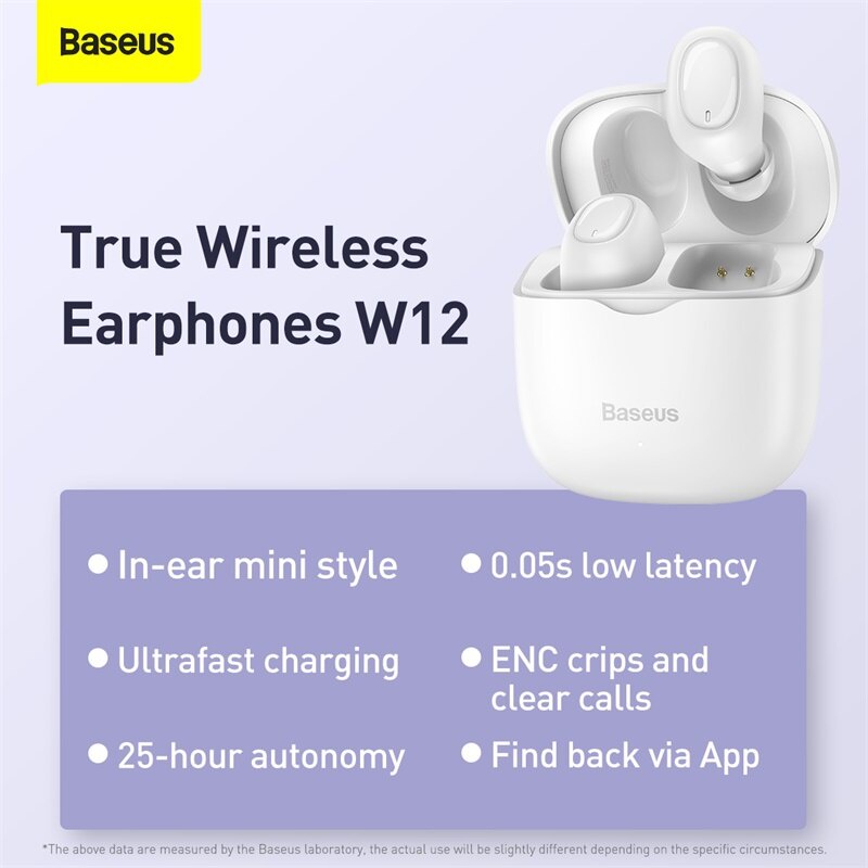 Baseus Wireless Earbuds W12 Bluetooth Earphone True Wireless Support HiFi Noice Cancelling With Microphone