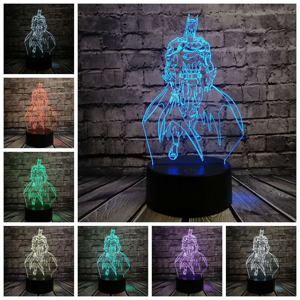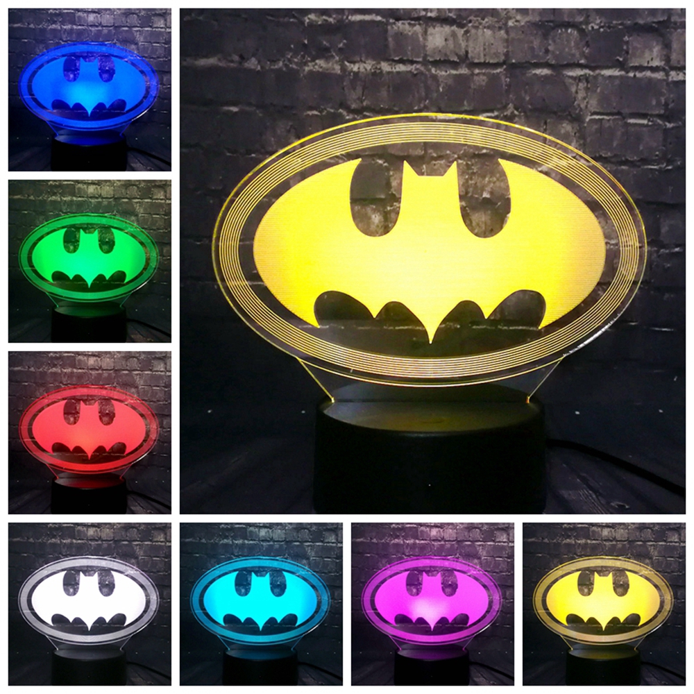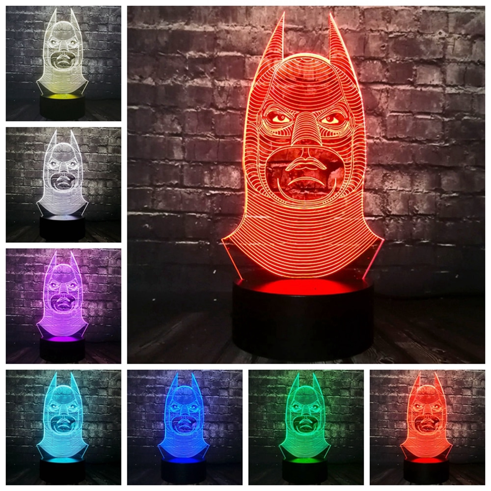 Bat Batman Mask 3D LED Night Light Multicolor RGB Bulb USB Lamp Baby Room Decor Children Gift