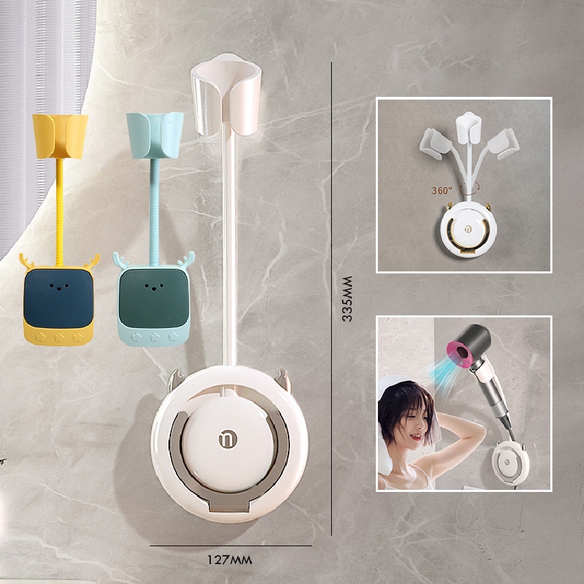 Bathroom Lazy Hair Dryer Holder 360 Degree Rotation Blow Dryer Bracket for Most Hair Dryers