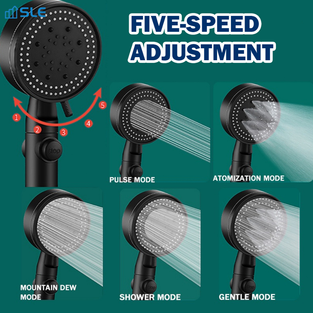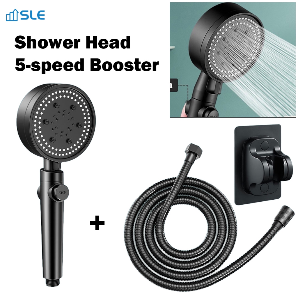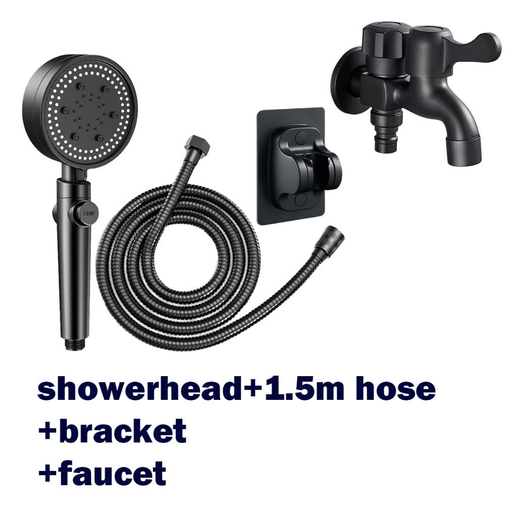 Bathroom Shower Set 5-speed Booster Shower with faucet valve hose Handheld Showe One-key Water Stop