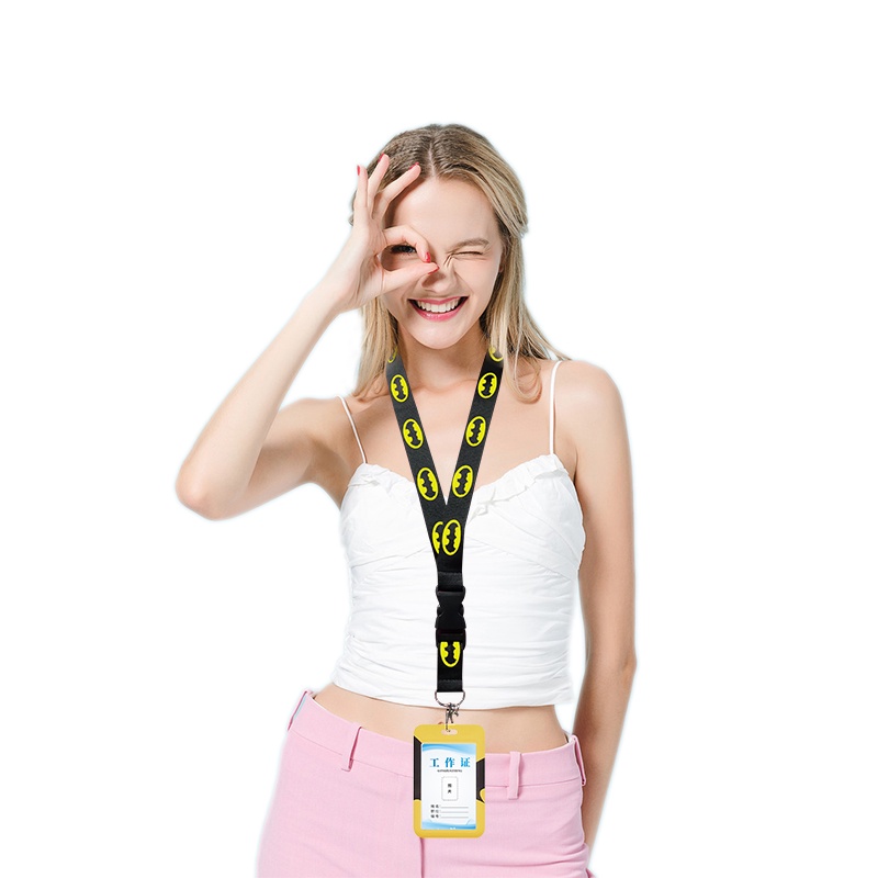 Batman Super Hero Lanyard+ID Card Sleeve Holder Neck Strap For Phone Case Keyching Sling With Clip Clasp And Charm Hard Card Case