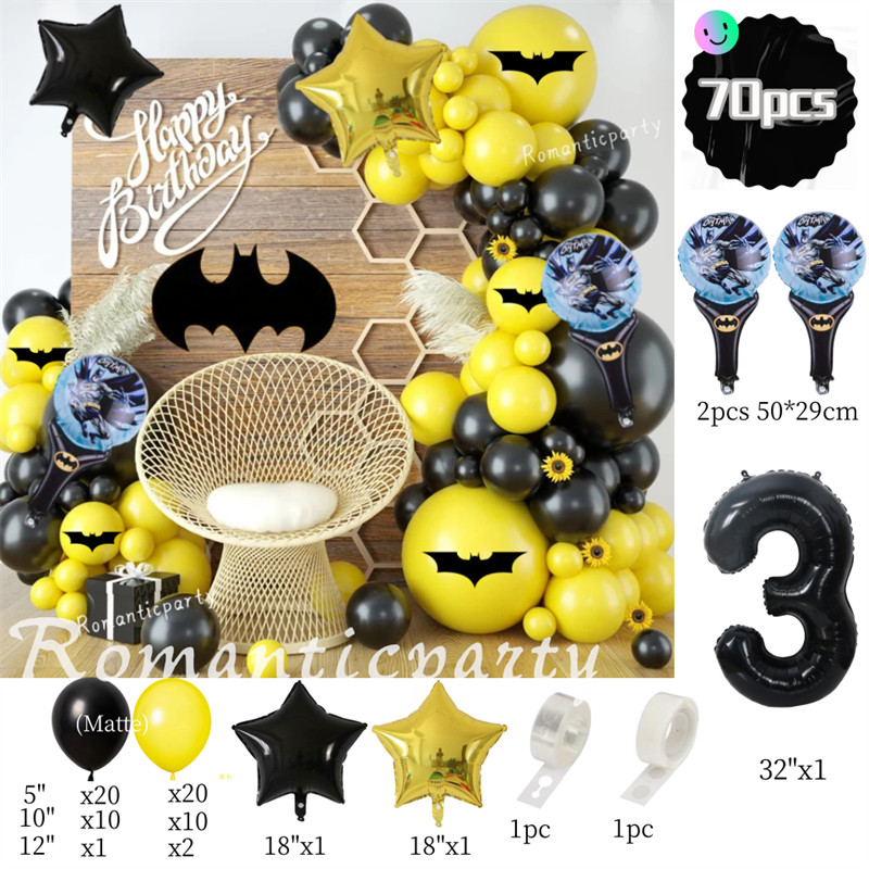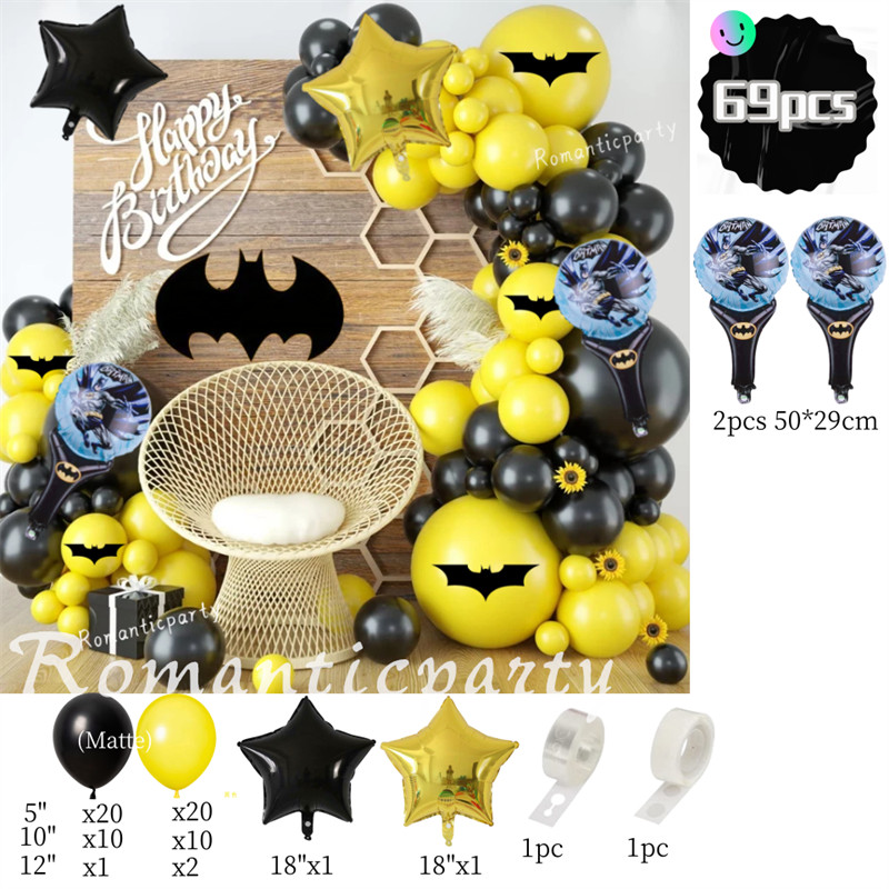 Batman Theme Yellow Black Latex Balloon Garland Arch Kit For Baby Shower Birthday Party Decoration