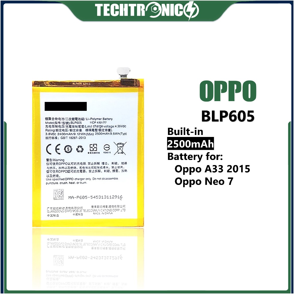 Battery BLP605 for Oppo A33 2015 / Neo 7 A33F A33W A33FW 2500mAh Capacity