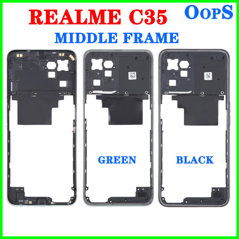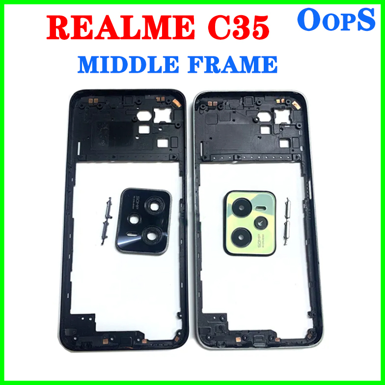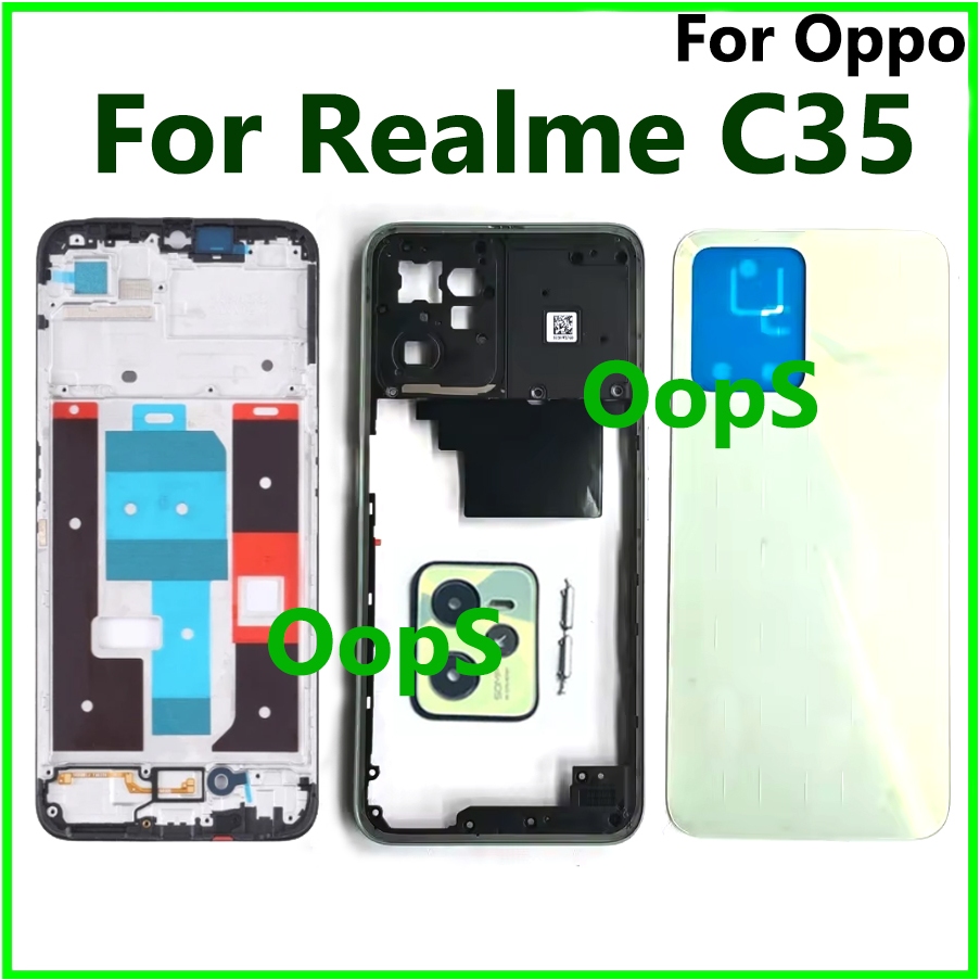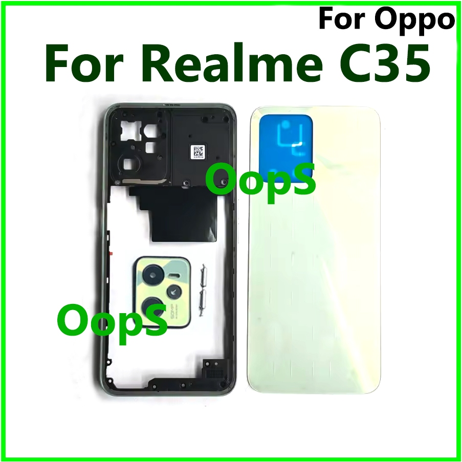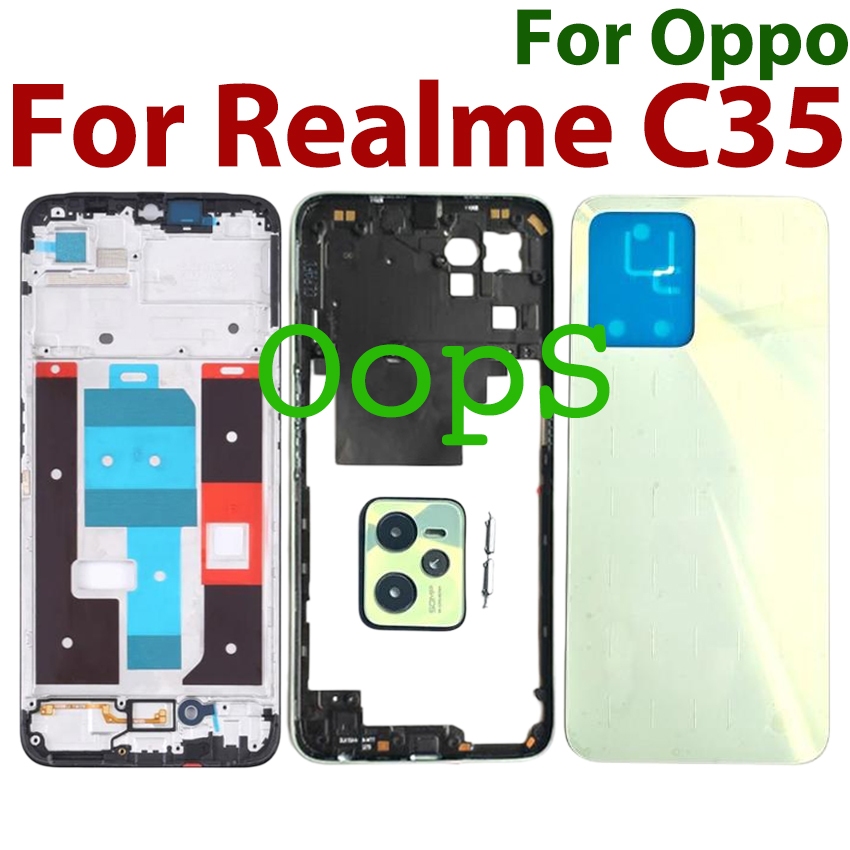 Battery Back Cover Housing Front Frame For Realme C35 Phone LCD Middle Frame Bezel RMX3511 Button+ Back Door Case Camera Lens