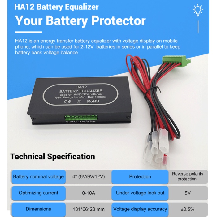Battery Balancer/Equalizer Bluetooth Monitoring HA12 48V 4 x 12V Series Battery Mobile APP