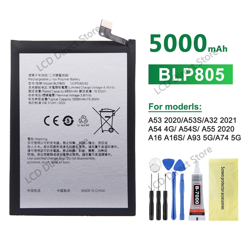 Battery Replacement BLP805 For OPPO A54 4G/A54S/ A55 2020/A16 A16S/A53 2020/A53S/A32 2021/A93 5G/A74