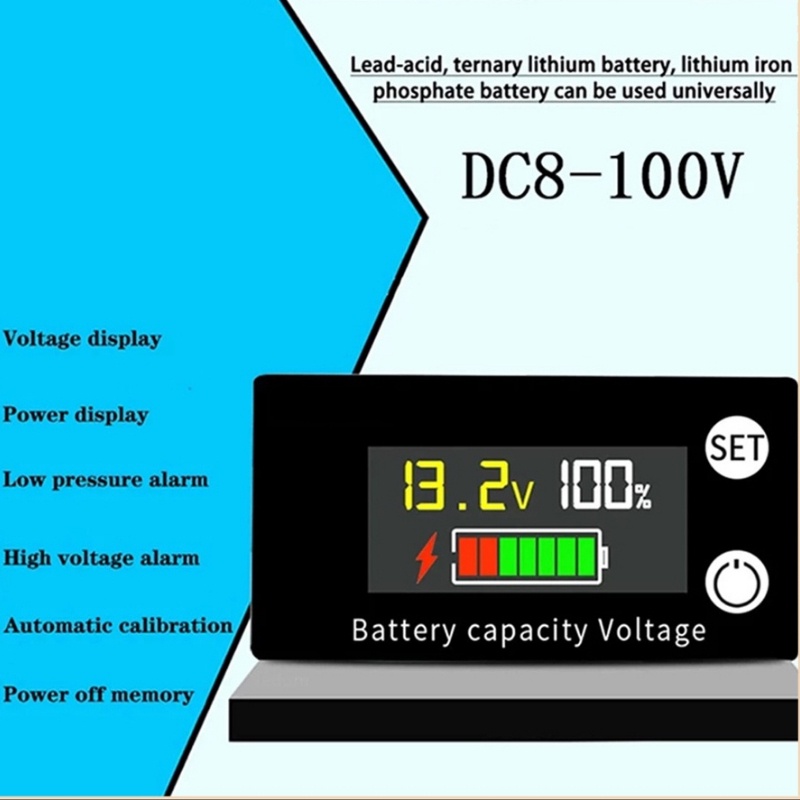 Battery Tester Digital Voltmeter Voltage Meter Battery Capacity Indicator DC 8V-100V Ammeter Monitor Gauge with LCD DC 8V-100V