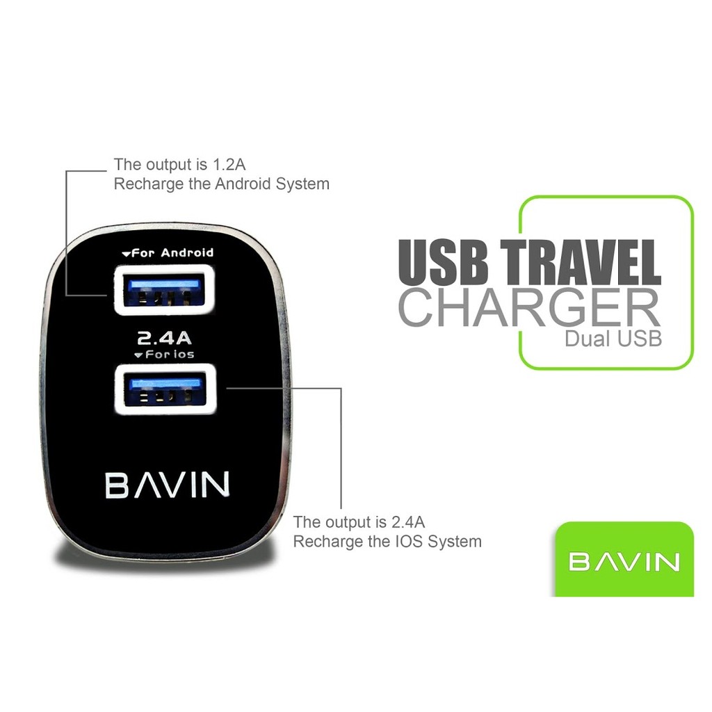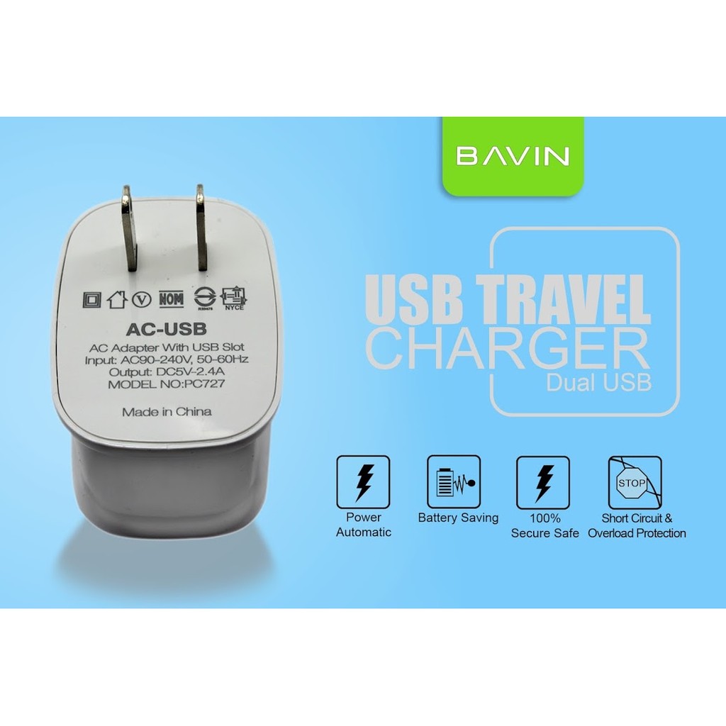 Bavin PC727 Dual USB Slot 2.4A Quick Charger Travel Adapter