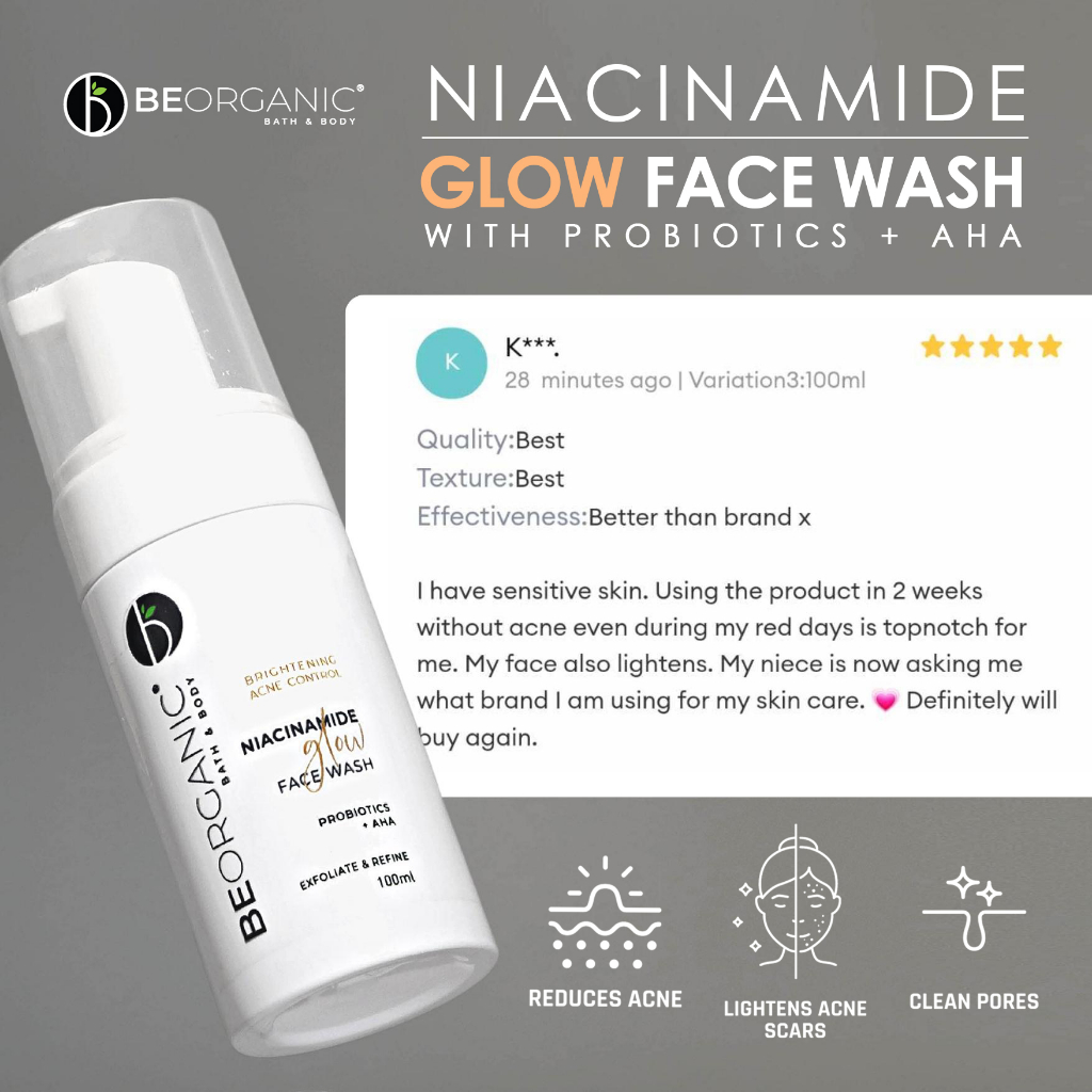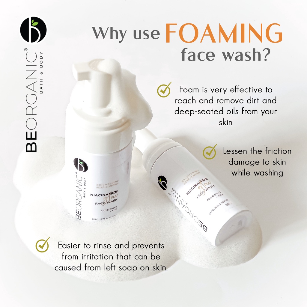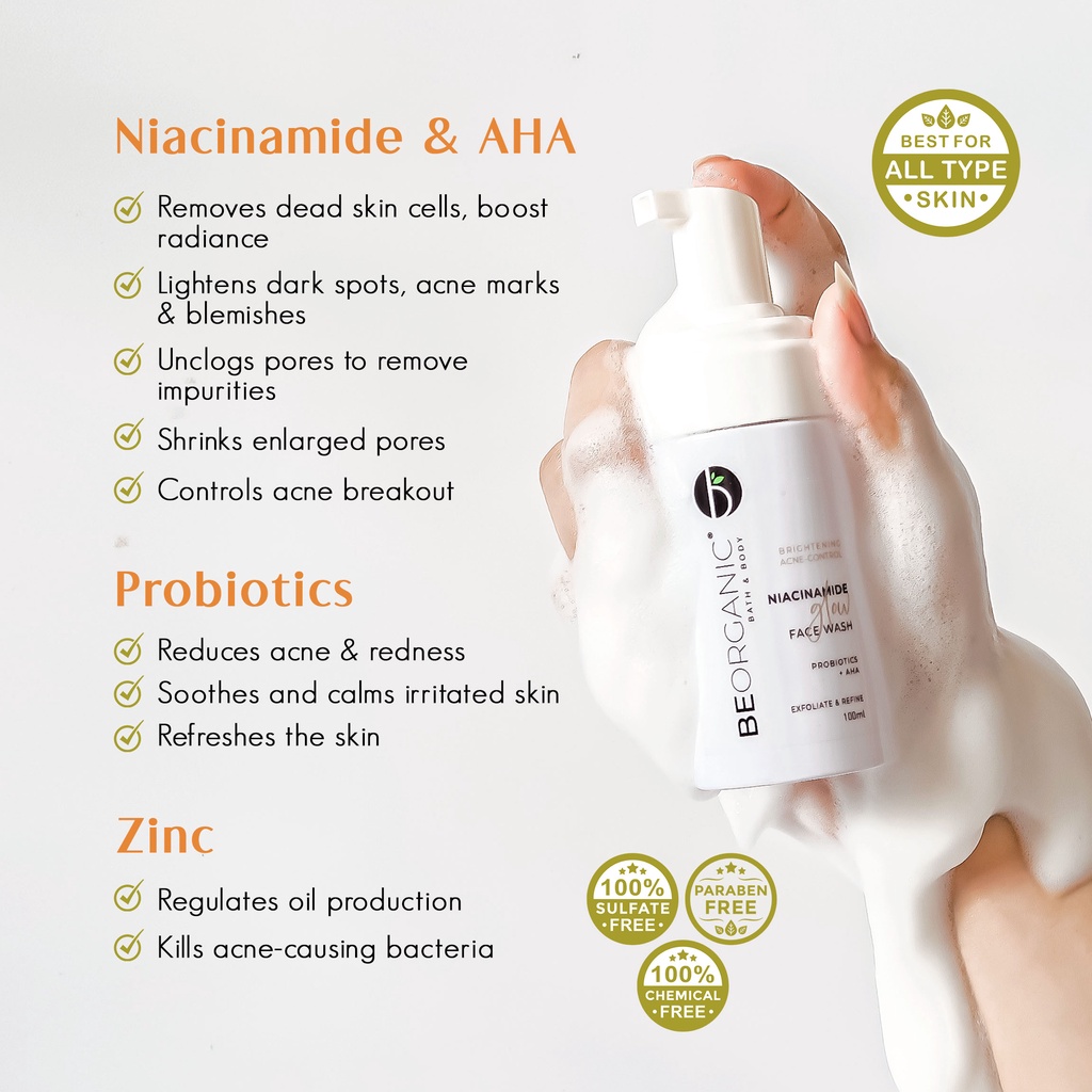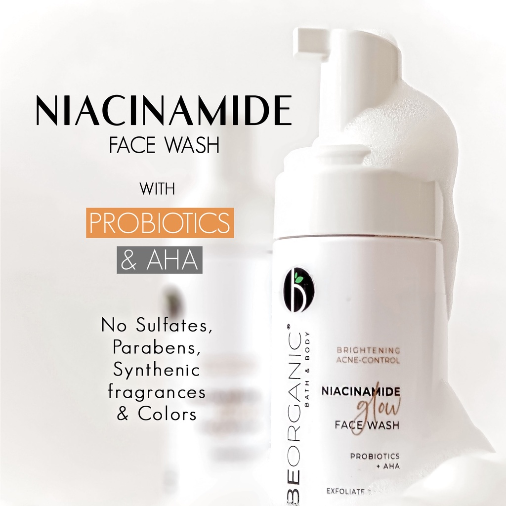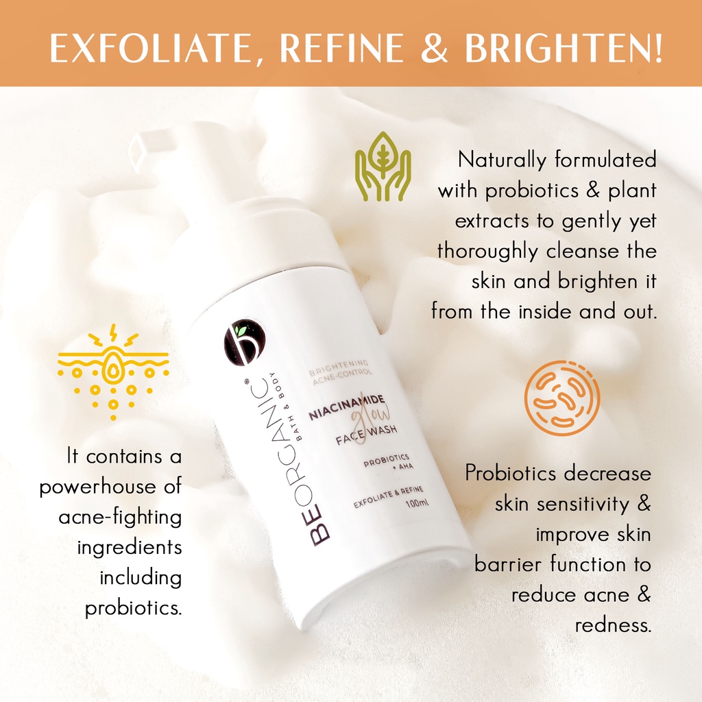 Be Organic Niacinamide Glow Face Wash with Probiotics + AHA Brightening Acne-Control Exfoliating