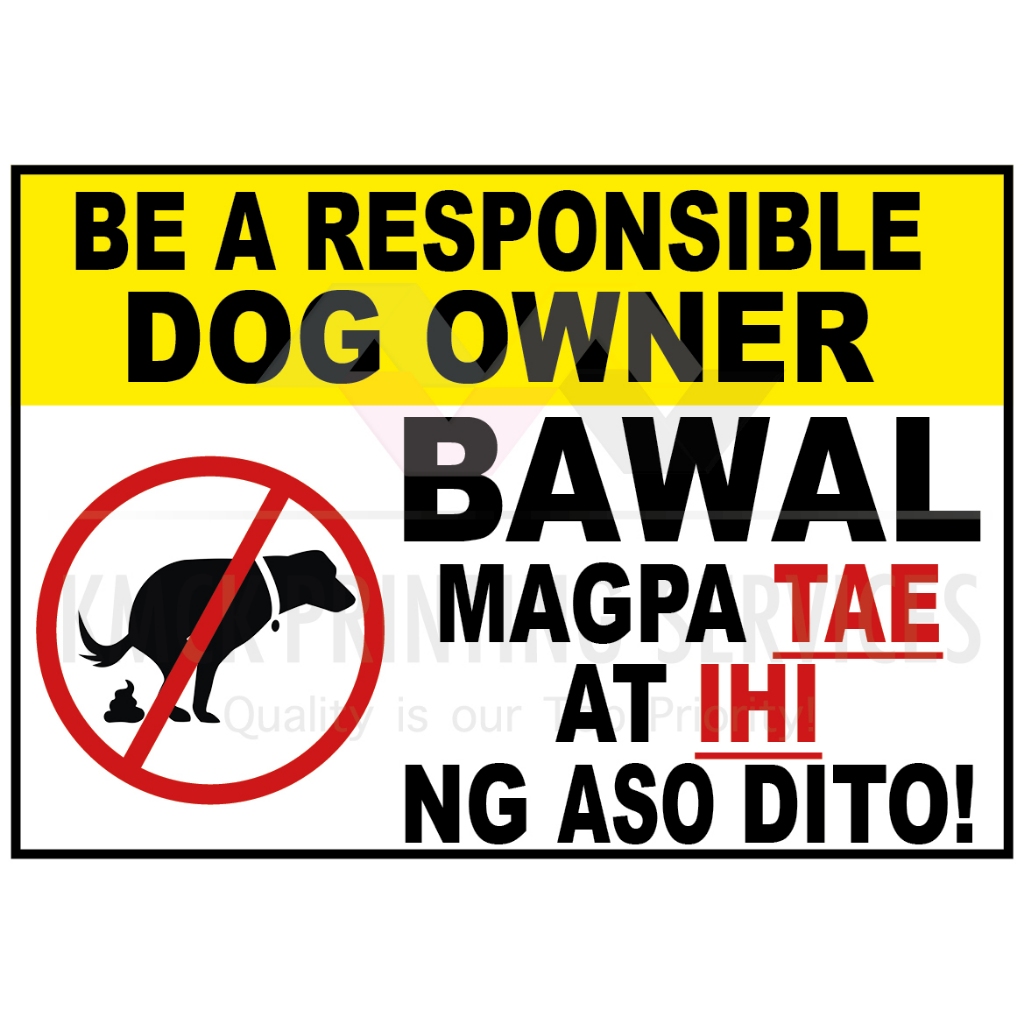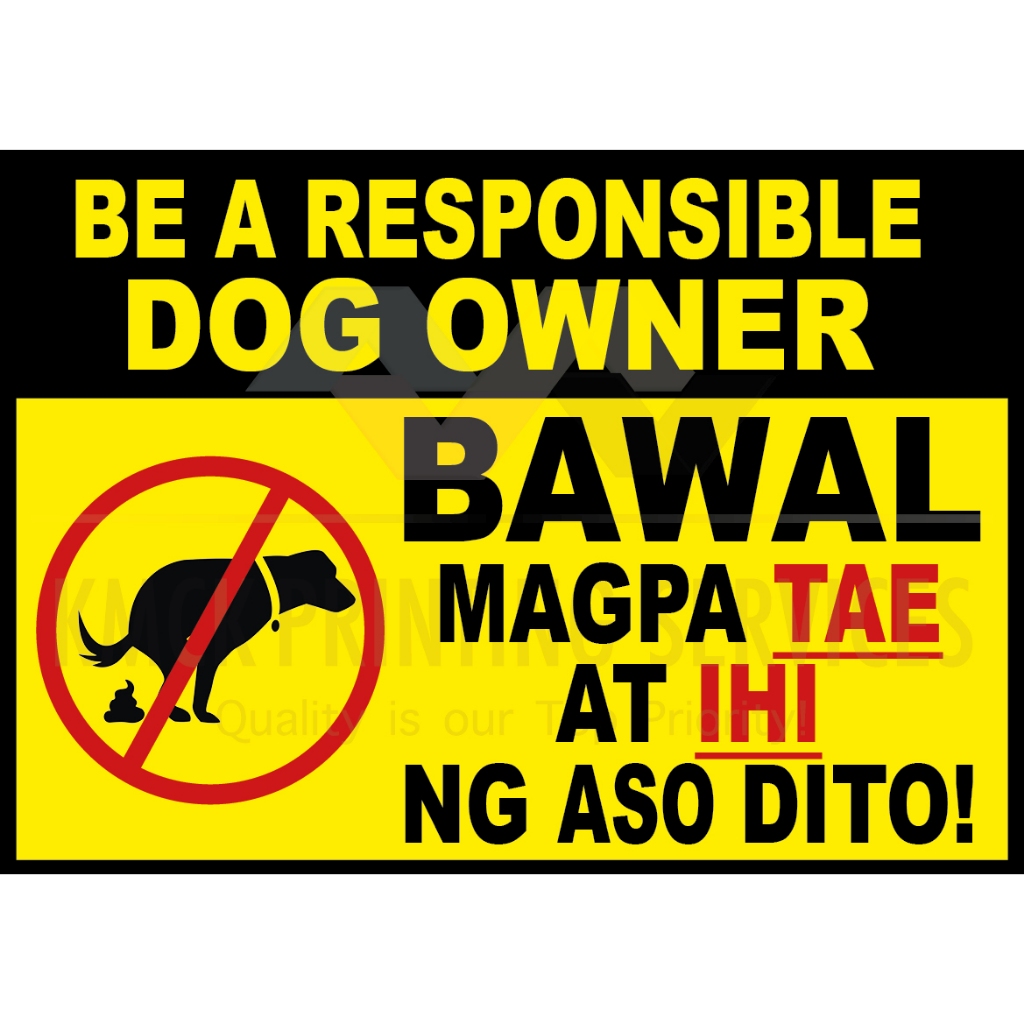 Be a Responsible Dog Owner | Bawal MagpaTAE o IHI ng Aso Signage