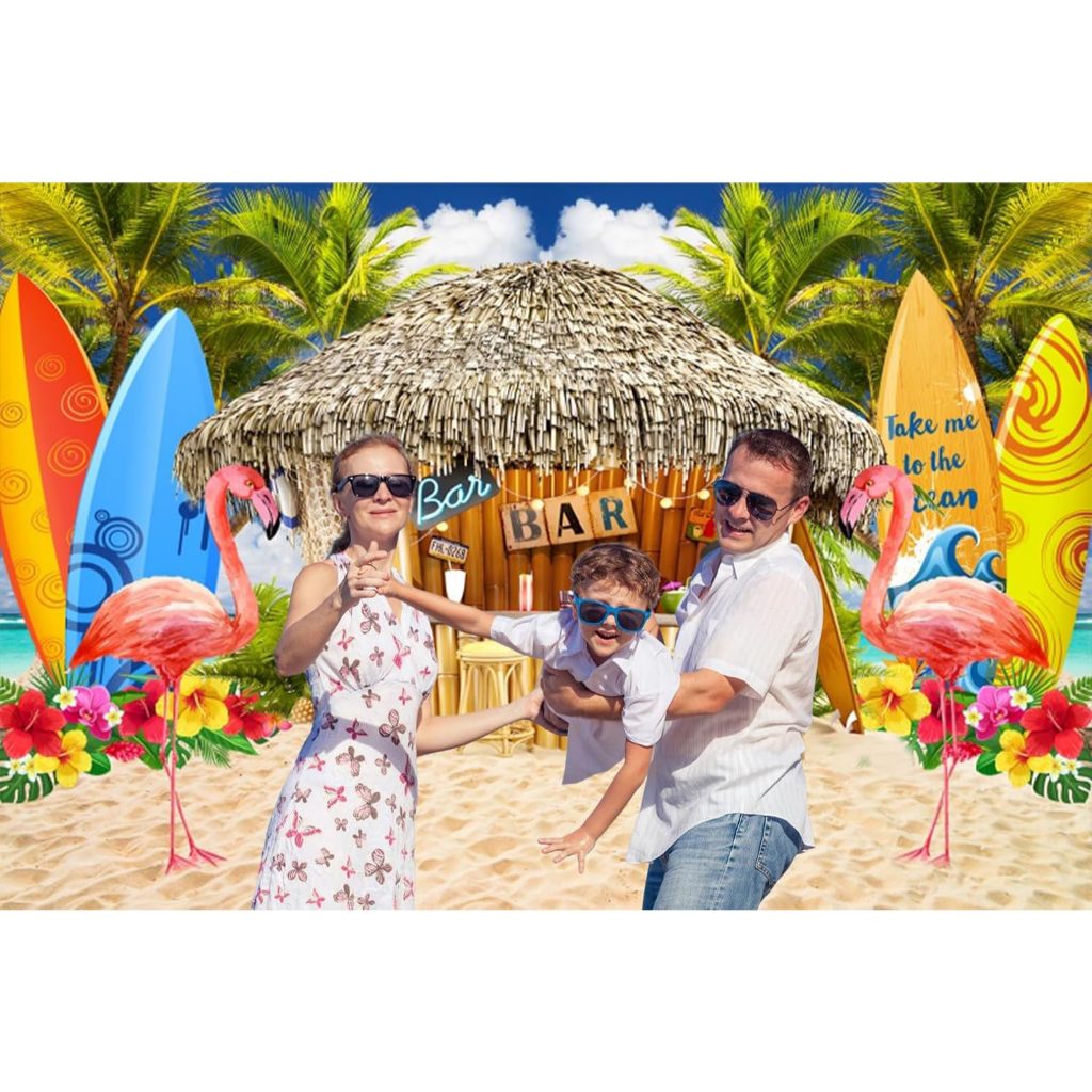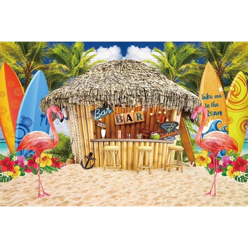 Beach bar background tropical flamingo palm tree summer seaside photography background 7X5 feet Hawaii holiday party Aloha background children's adult portrait photo prop