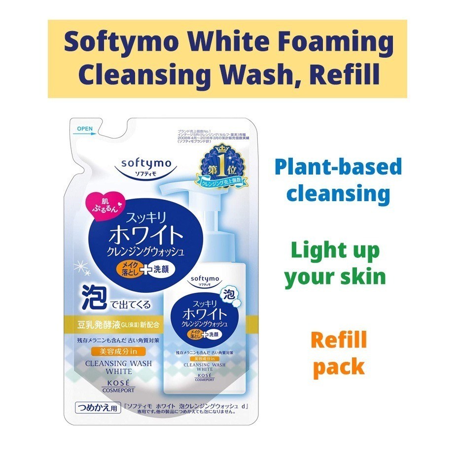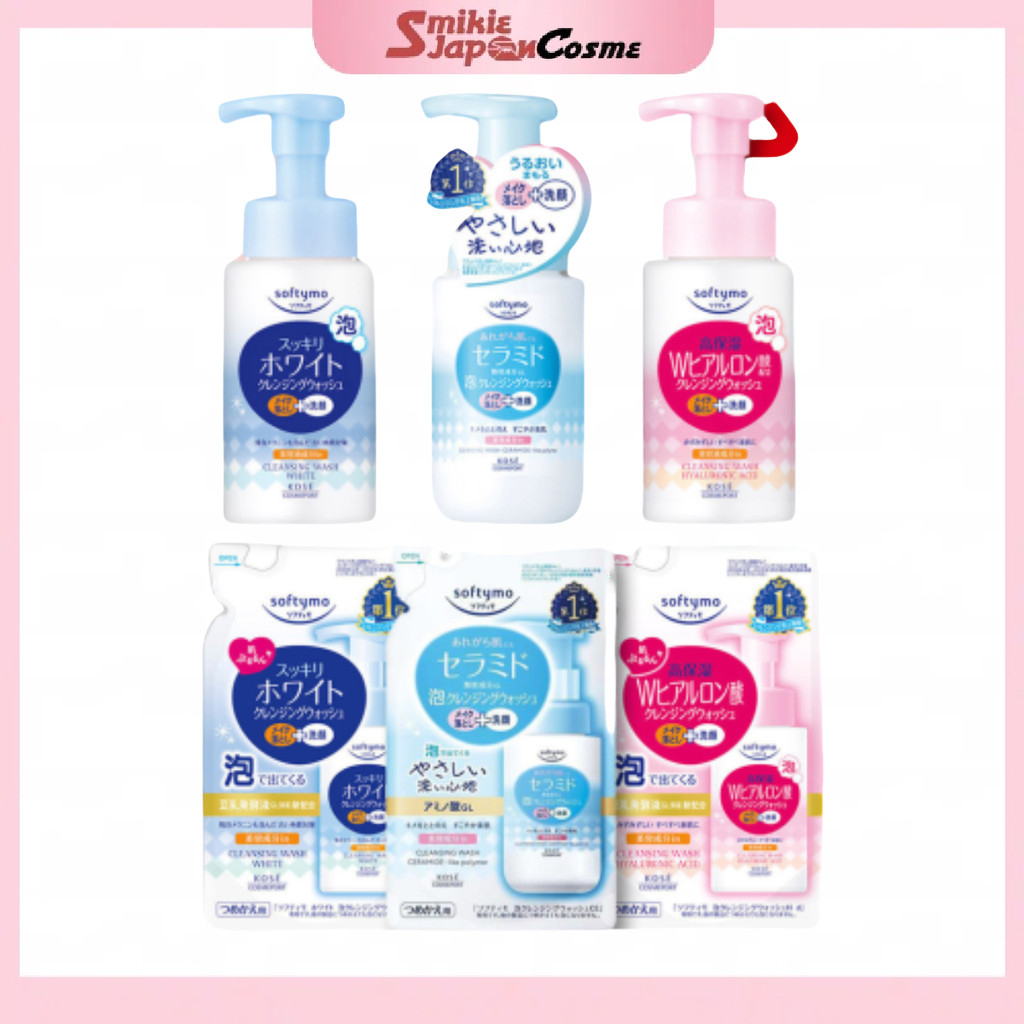KOSE Softymo Foaming Cleansing Wash White/Hyaluronic Acid/Ceramide 200ml each at Refills 180ml each