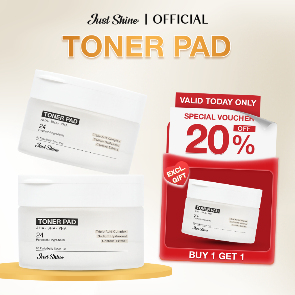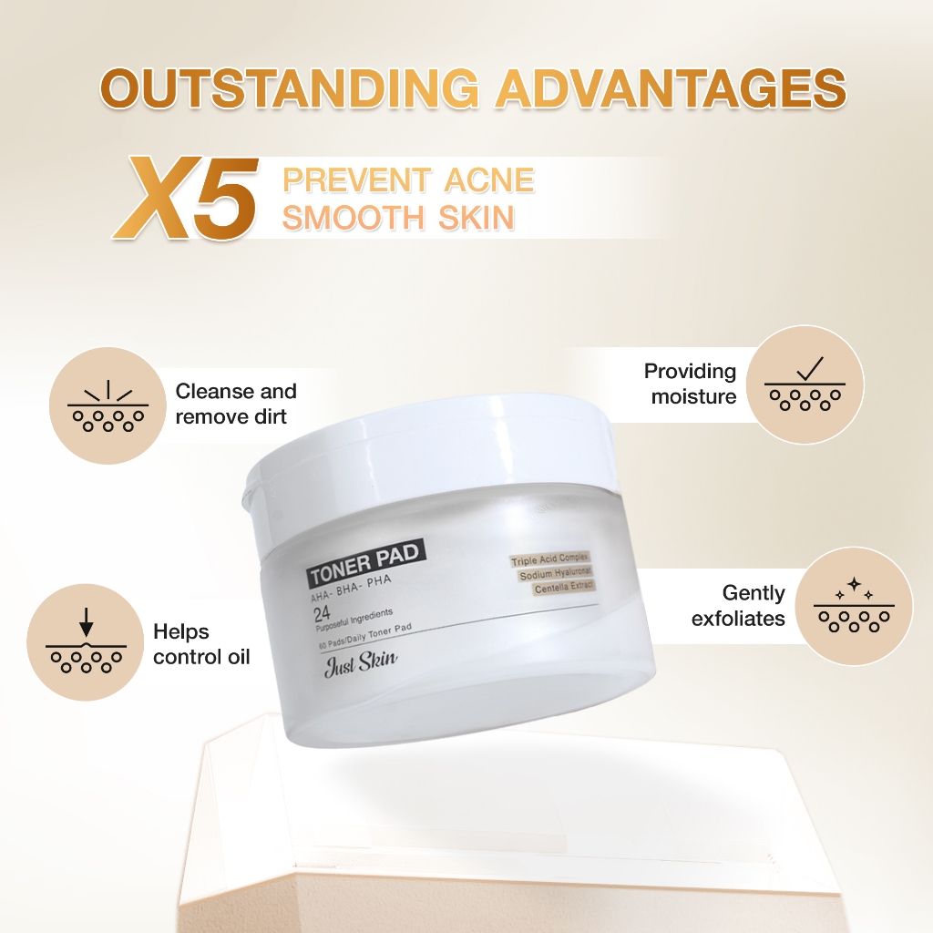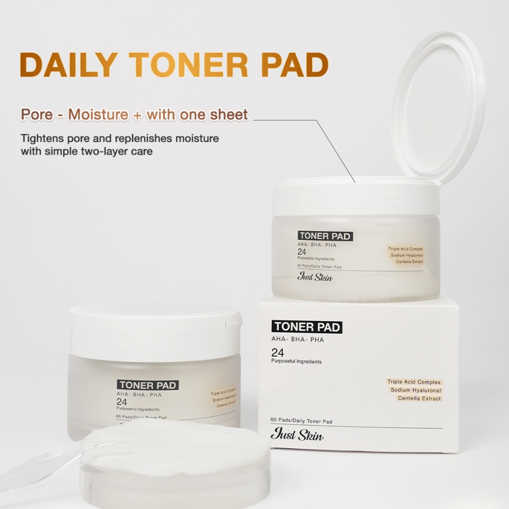 [NEW VERSION] Just Skin Toner Pad facial essence helps clear skin, minimizer pores, exfoliate 60pads