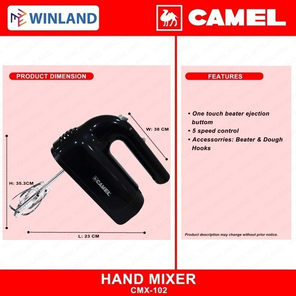 Camel Appliances by Winland Hand Mixer Black with 5-Speed Turbo Function CMX-102