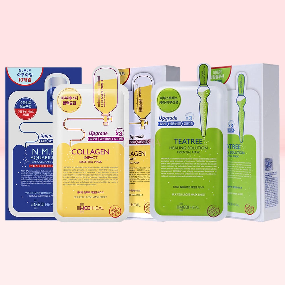 Mediheal Face Mask 10pcs - Cica Calming / Aqua Soothing / Teatree / Collagen / Placenta / N.M.F Original / Madecassoside Blemish Repair / Rose PDRN Healthy Glow