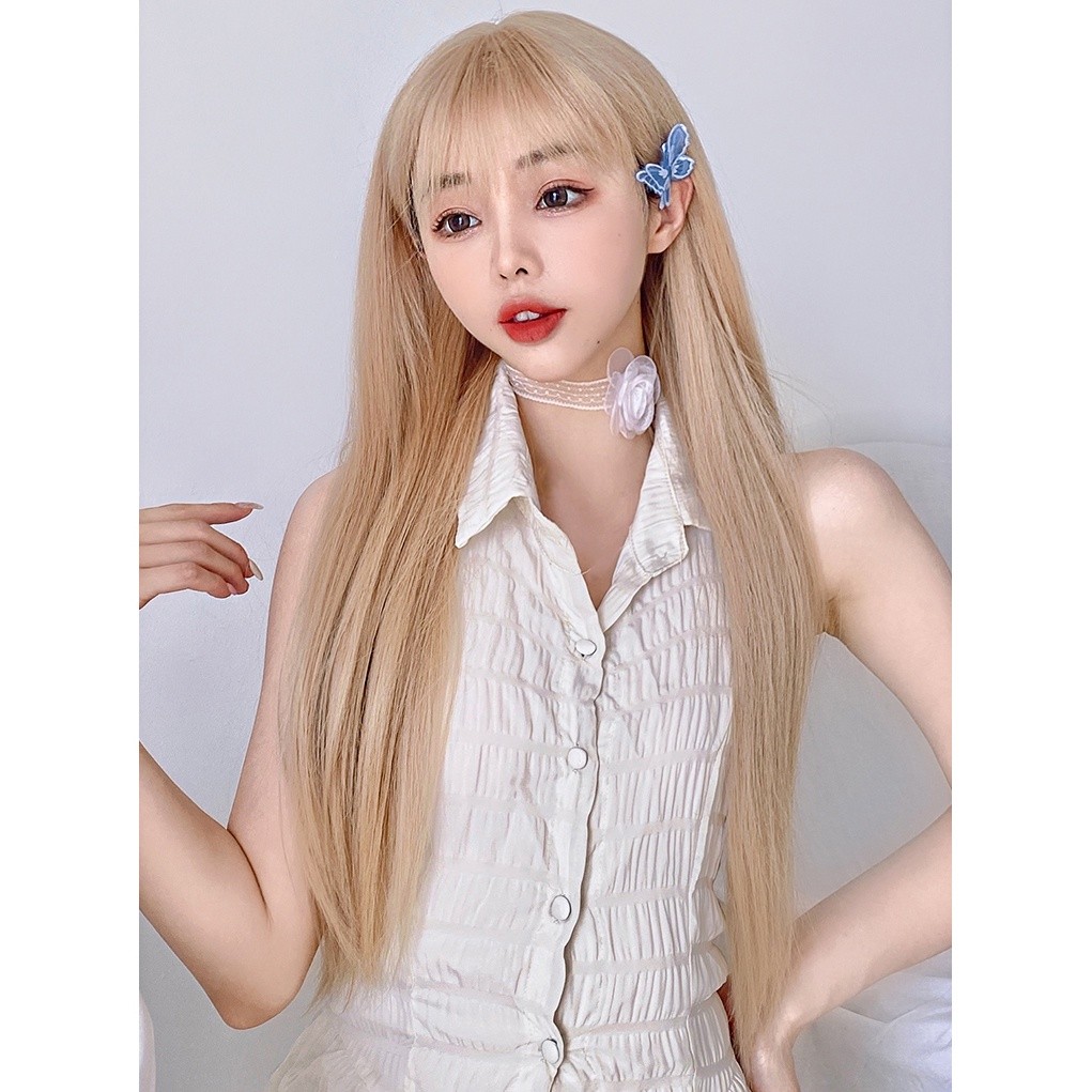 ''Aurora''Wig@WL;68CM`Dp'long hair white blonde straight round face lolita natural high quality`XZ`