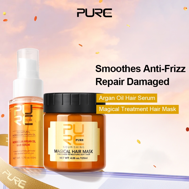 PURC Keratin Hair Mask Moisturizing Smoothing Hair Care +Morocco Oil Hair Serum Shiny & Repair Dama
