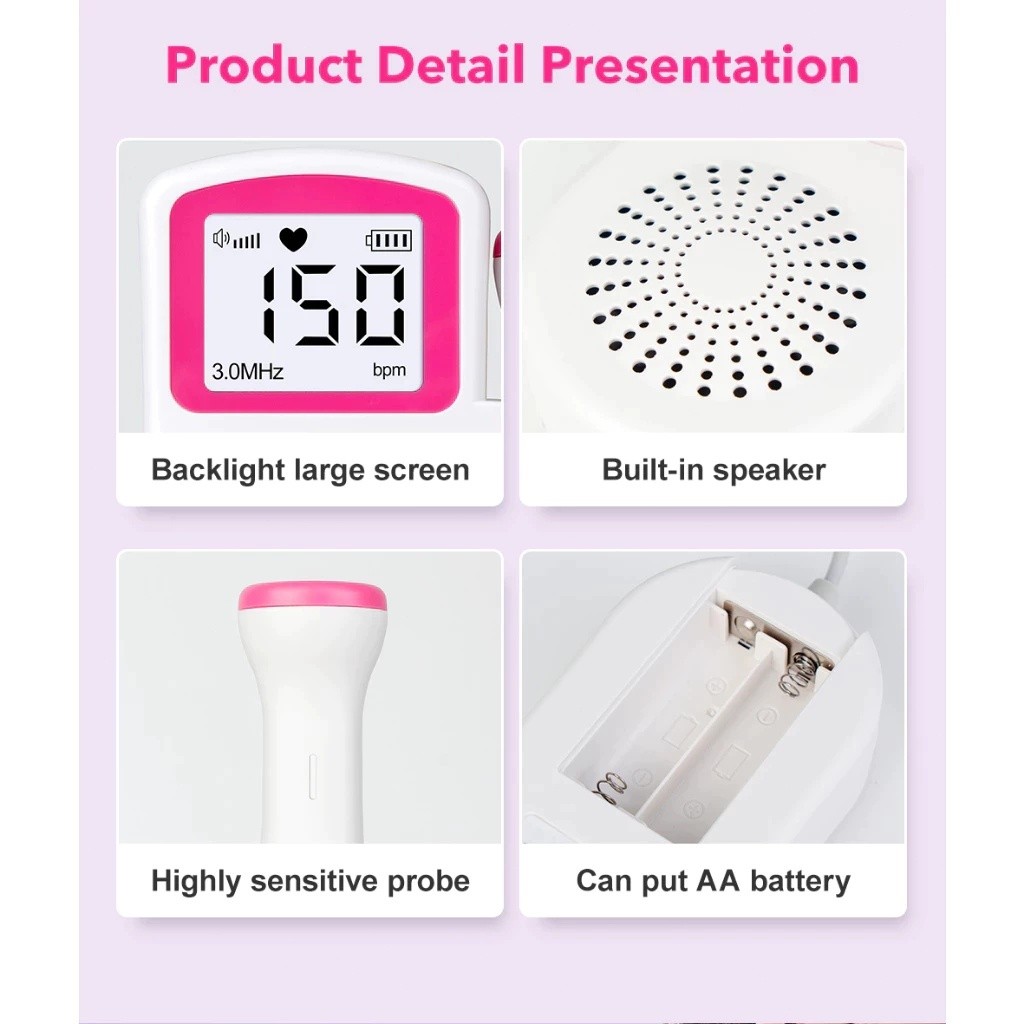 Surpluck Doppler Baby Heart Monitor Home Pregnancy Baby Heartbeat Detector Fetal Doppler With Gel