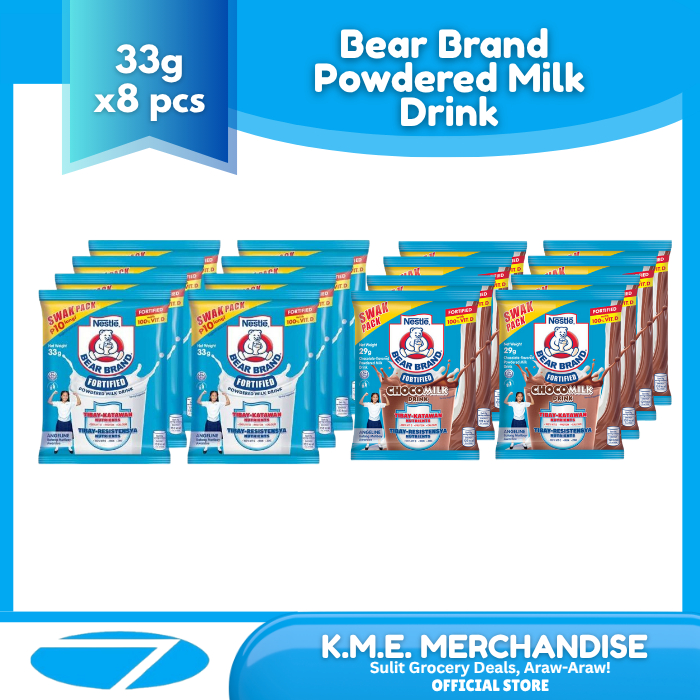 Bear Brand Fortified Powdered Milk Drink (33g x 8pcs) – Original/Chocolate