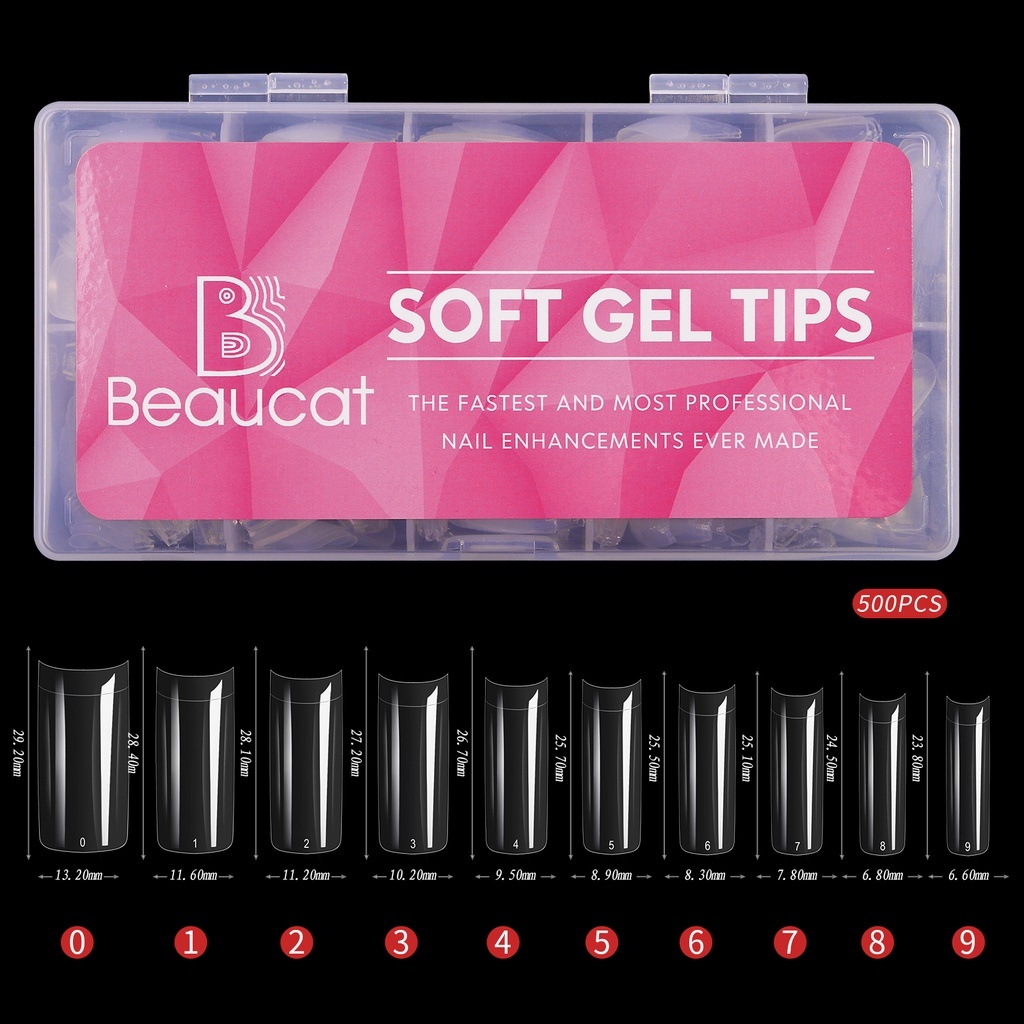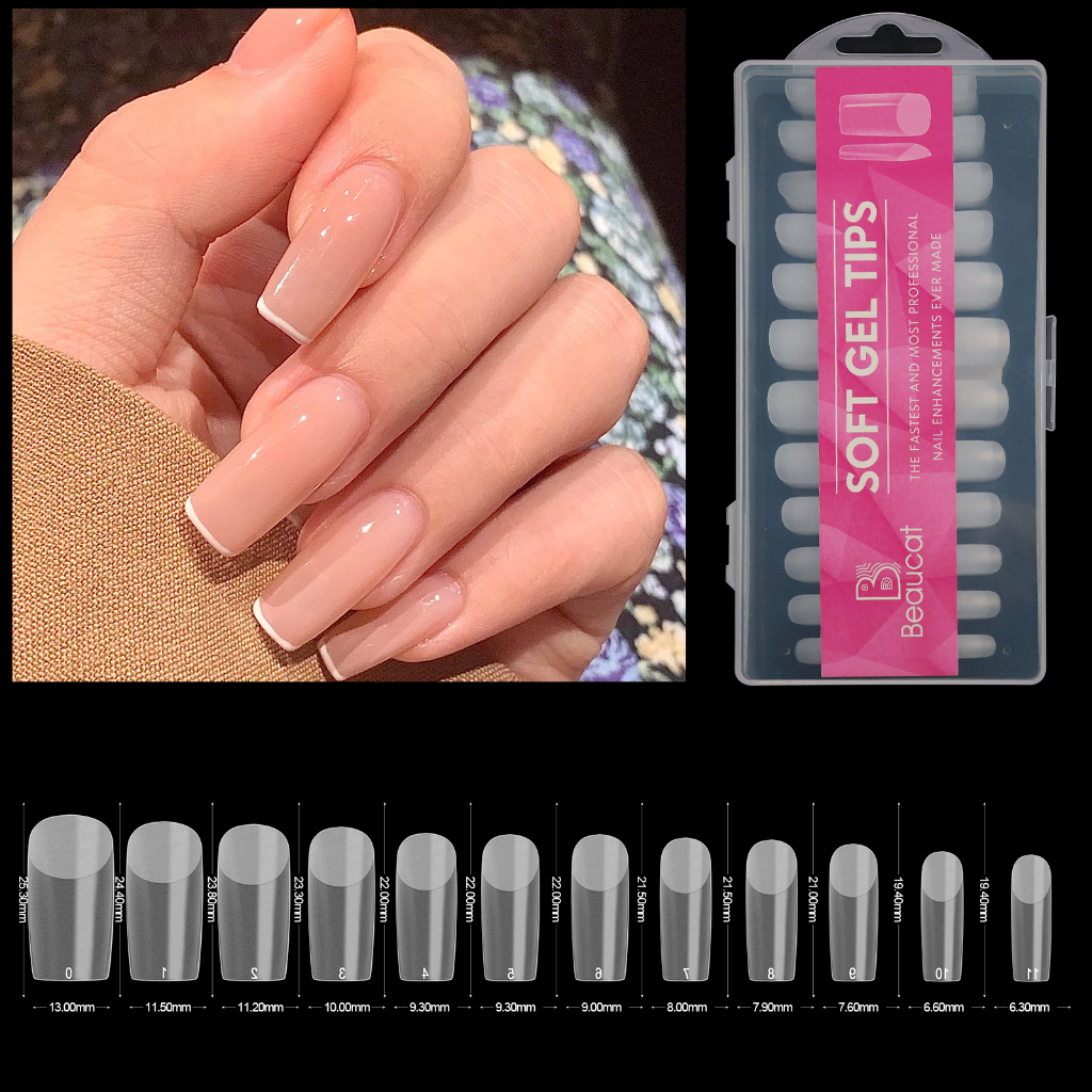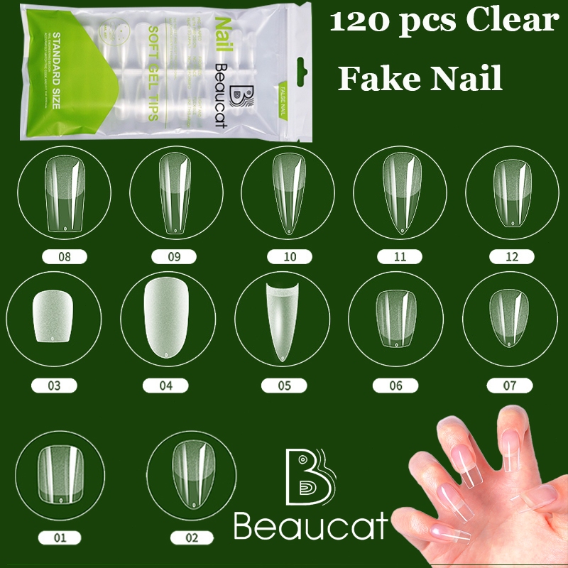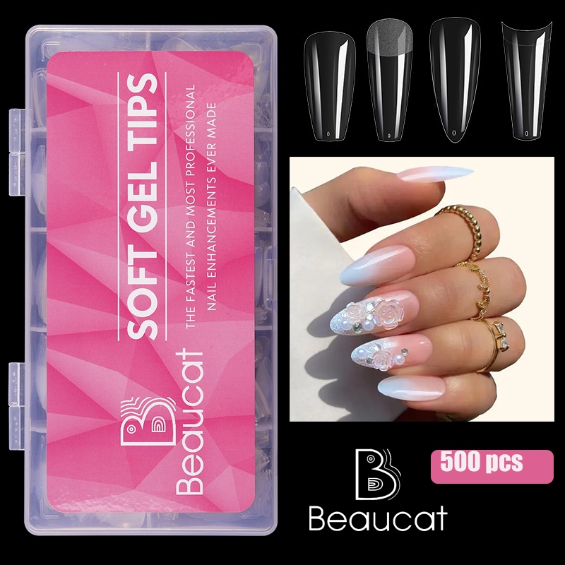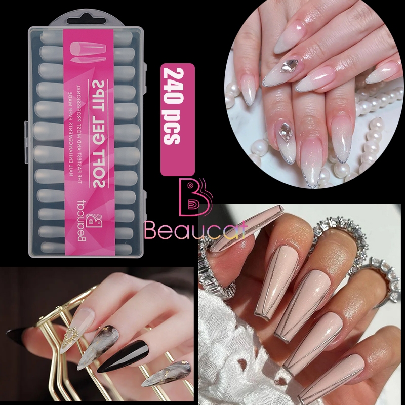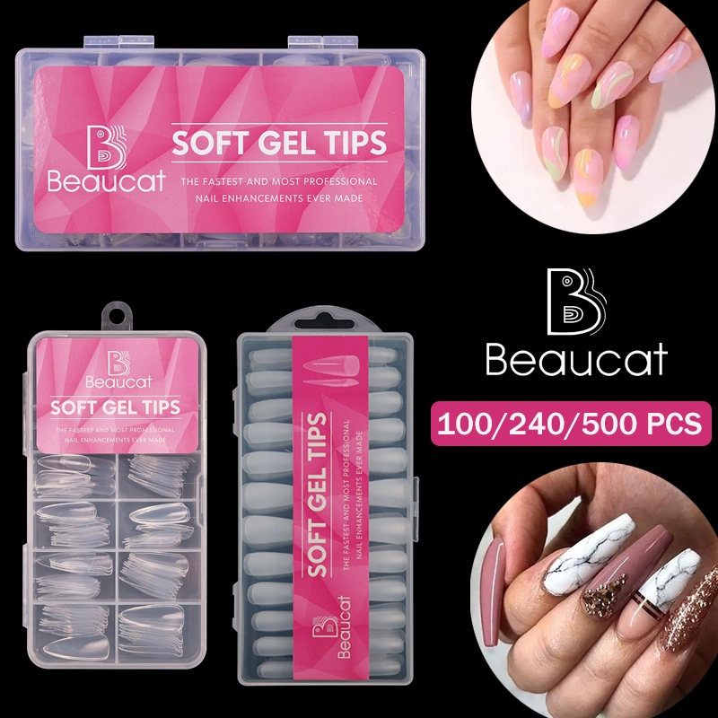 Beaucat fake nails set 500/240/120/100 Pcs DIY nail extension set transparent soft gel nail tips Kit