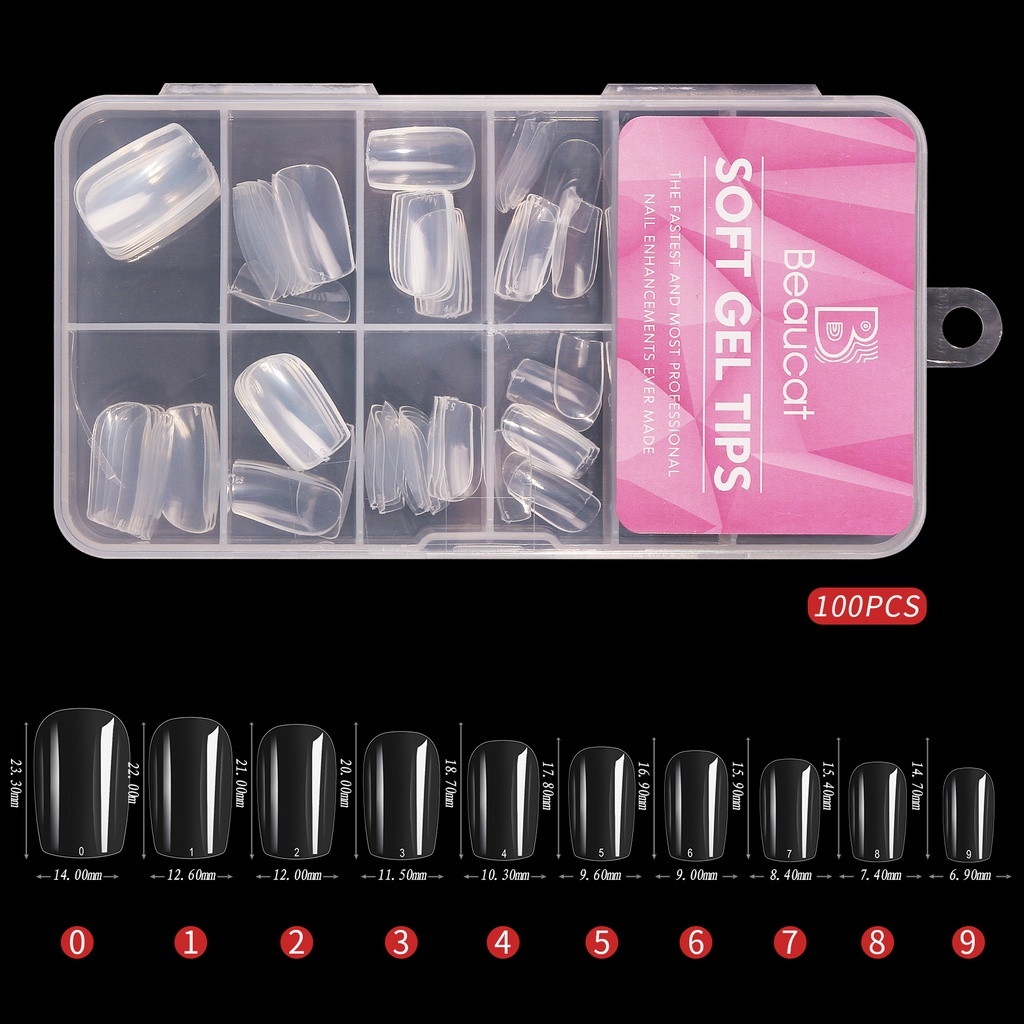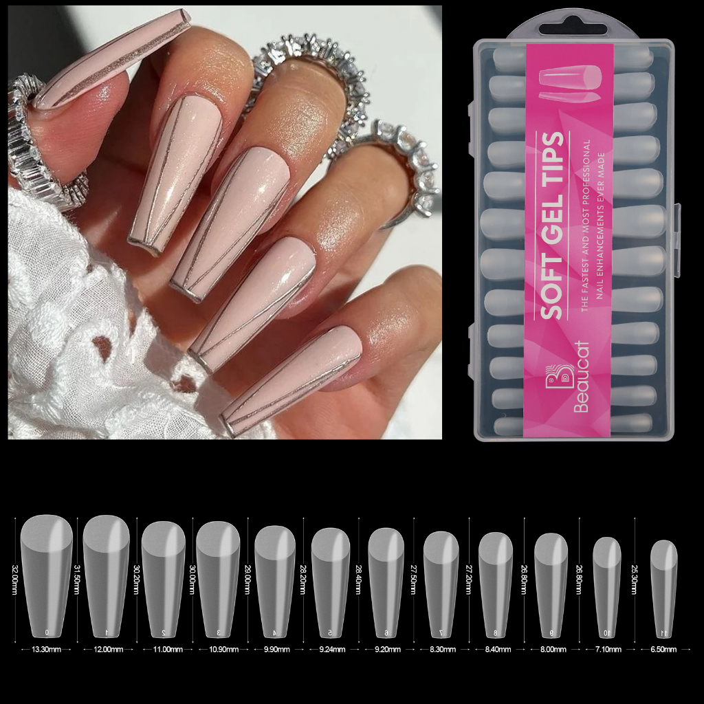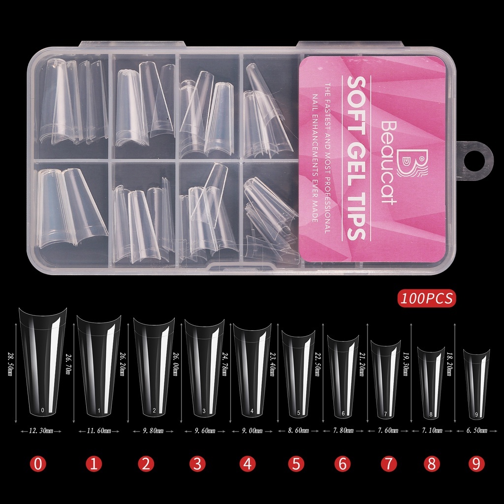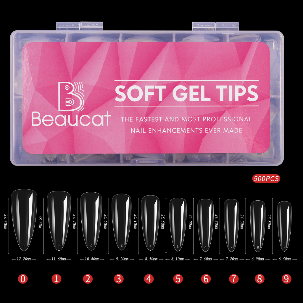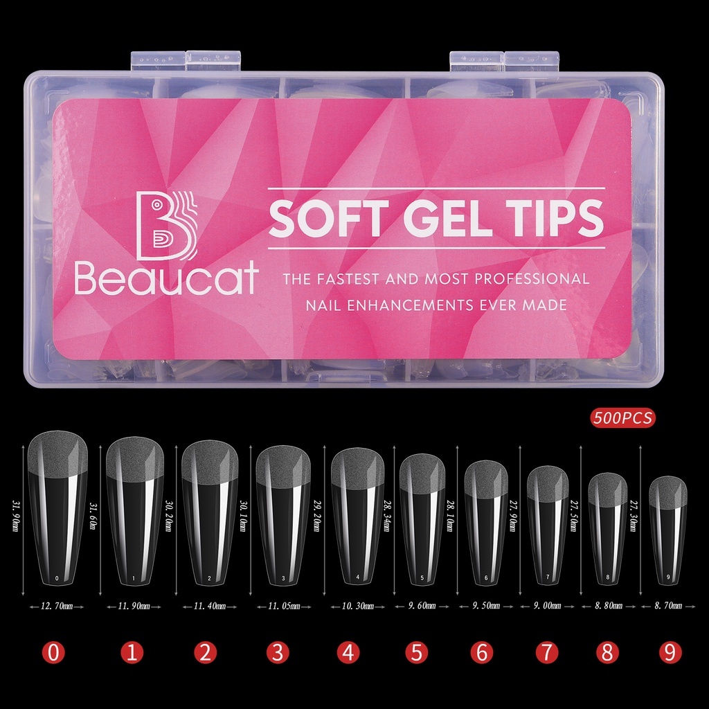 Beaucat fake nails set 500/240/120/100 Pcs DIY nail extension set transparent soft gel nail tips Kit