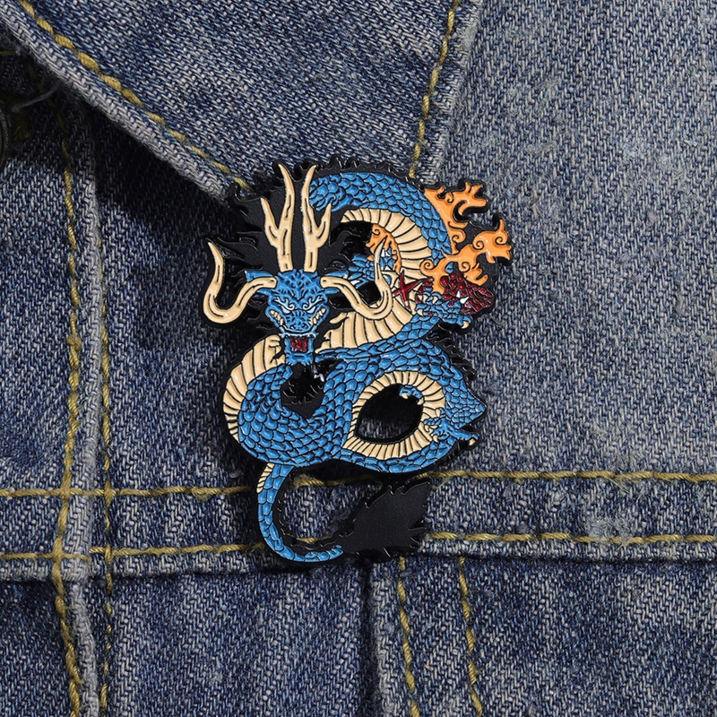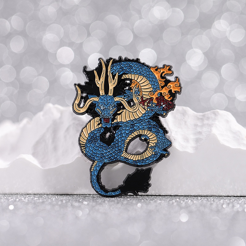 Beautiful Blue Dragon Enamel Pin Brooches Chinese Dragon Badges Pin Jewelry Gift for Friend