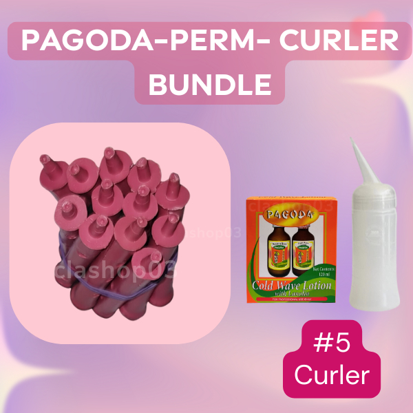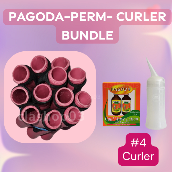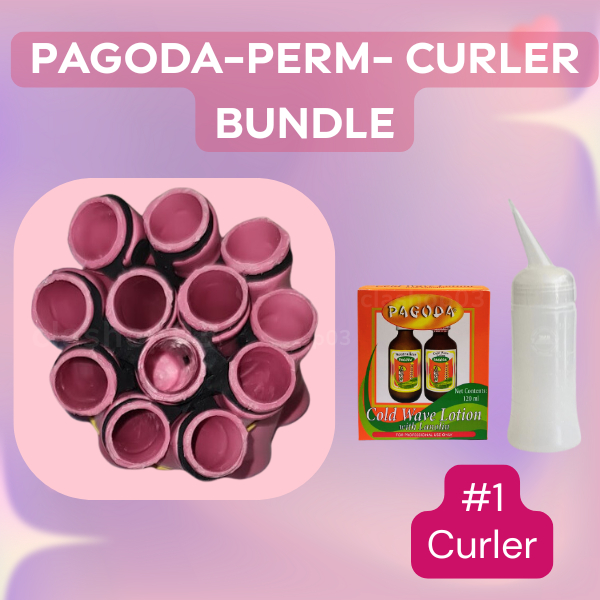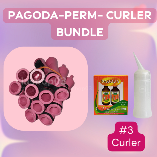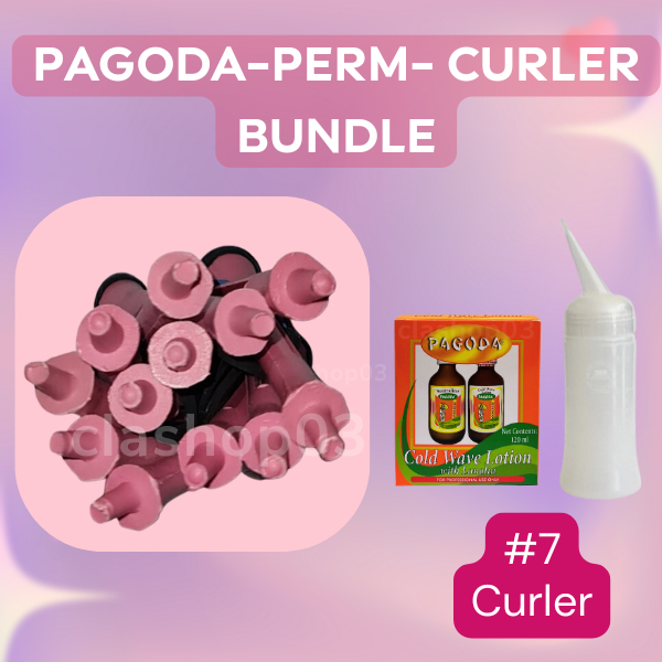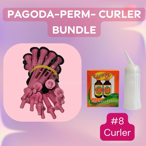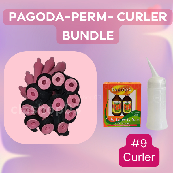 Beauty Salon Bundle of Pagoda 120ml - Large Perm Squeezer - Curler Sizes 1 to 9 for Salon Use