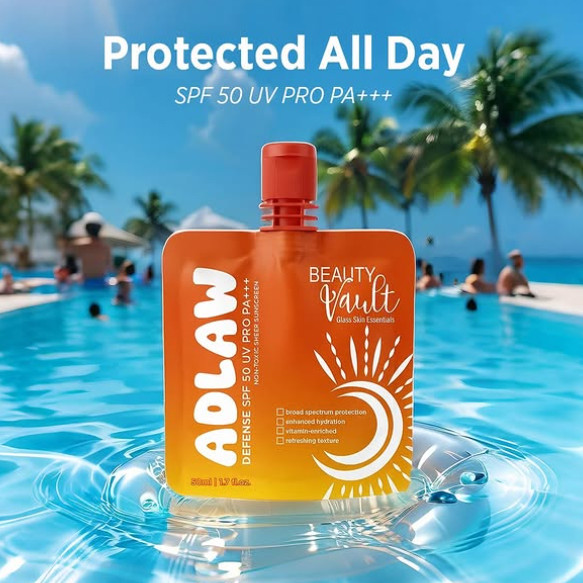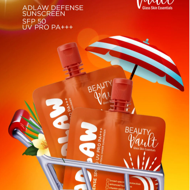 Beauty Vault Adlaw Sunscreen SPF 50 Glass Skin Non-Toxic Sheer Sunscreen 50ml Sunblock No White Cast